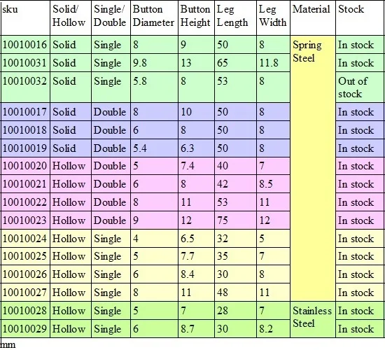 Быстро вставляется в круглые или квадратные трубки. Кнопки сделаны из пружинной стали 1050, термообработанной и оцинкованной минимальной.