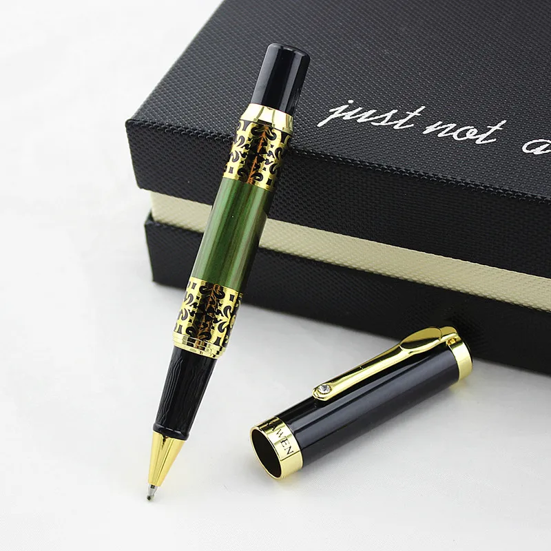 Роскошная металлическая шариковая ручка, модная красивая шариковая ручка с золотой резьбой, красное дерево, средний наконечник, шариковая ручка