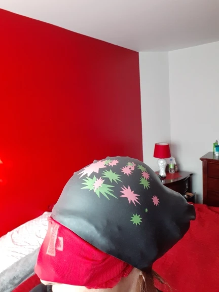 Доставка чуть больше недели, всё четко. Шапка из очень эластичной резины, без запаха. На густые длинные волосы отлично подошла!