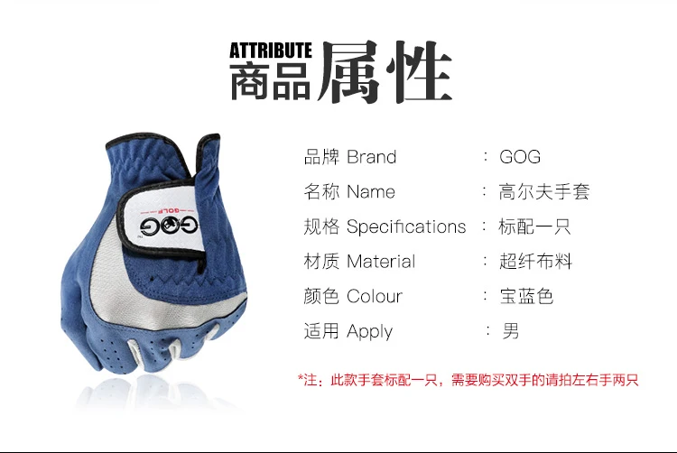 Перчатки Для Гольфа GOG для мужчин и женщин, дышащие спортивные перчатки из мягкой ткани и микрофибры, для левой и правой руки, синие мужские, 1 шт., пара 2 3 4 5 r