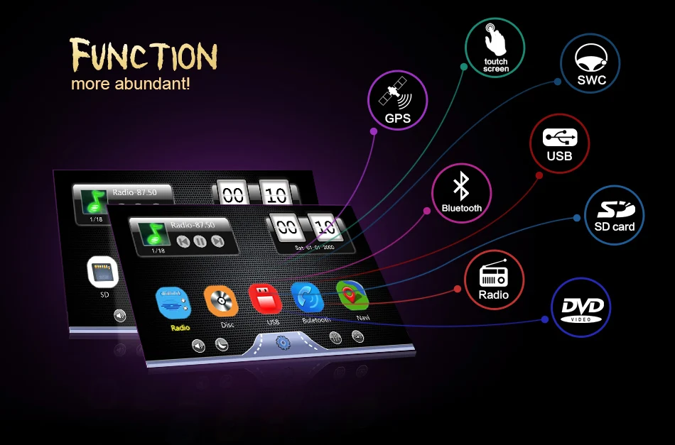 1. 2 din Автомобильный Радио сенсорный экран TFT ЖК-дисплей.2. Автомобильный gps-навигатор, встроенный в функцию gps-навигации (Windows CE 6,0)3. Автомобильный dvd Поддержка управления рулевым колесом (за исключением сиденья автомобиля. Если ваш автомобиль находится на сидении, он не поддерживает управление рулевым колесом)4. Воспроизведение DVD 2 din Совместимо с AVI/DVD + R/DVD-R/DVD + RW/DVD-RW/VCD/MP3/CD/CD-RW/JPEG5. 2din автомобильный dvd Встроенный радио и RDS. FM/AM доступны для любого рынка. (Европа/Австралия/Южная Америка/Северная Америка/Россия/Япония/и т. Д.)6. Двойной din автомобильный стерео для SD карты usb-ридер Поддержка MP4/JPEG/ MP3 и WMA воспроизведение с кнопкой лампы7. Кассетный плеер для автомобилей 1 Route аудио/видео вход. 2 маршрута аудио/видео выход.8. Автомобильный радиоприемник 2 din gps собран в Bluetooth для мобильного hands-free.phone книга скачать. Встроенный микрофон9. 2 din радио Поддержка MP3 плеер Автомобильный сабвуфер функция10. 2din Автомобильная аудио опционально: цифровая ТВ-тюнер система. Камера заднего вида