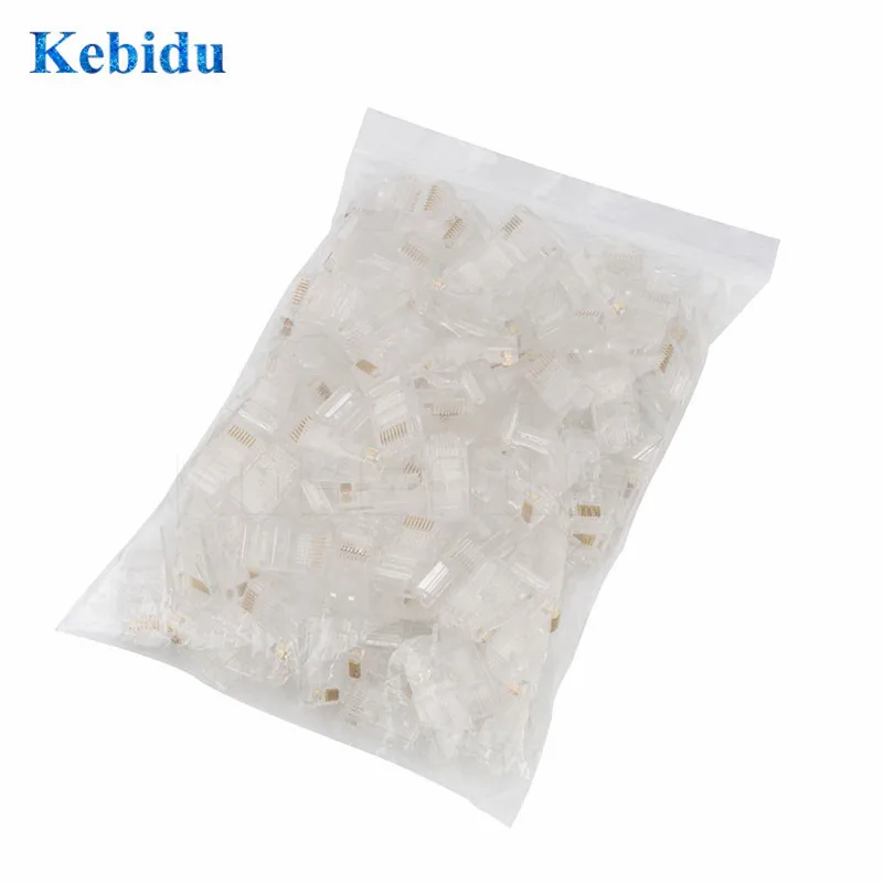Kebidu 100 шт. RJ45 RJ-45 кабели Ethernet модуль штекер сетевой разъем для UTP Cat5 Cat5e сетевой кабель Кристальные головки 8P8C Горячие