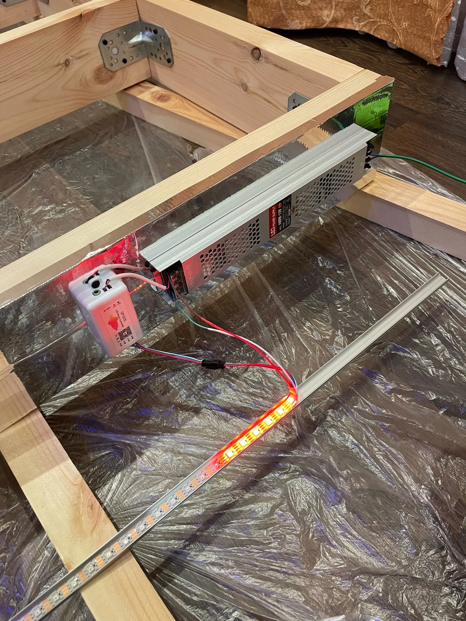 Музыкальный контроллер работает. В приложение LED Chord можно задать ритм, под которую будет лента мигать - и может работать без него! Реагирует на музыкальные колонки, на звук и пердёжъ, на хлопки, на писк, главное выставить Sensivity на максимум, метр ленты работает от 5v 4a 144/m - для самоделки круче не придумаешь