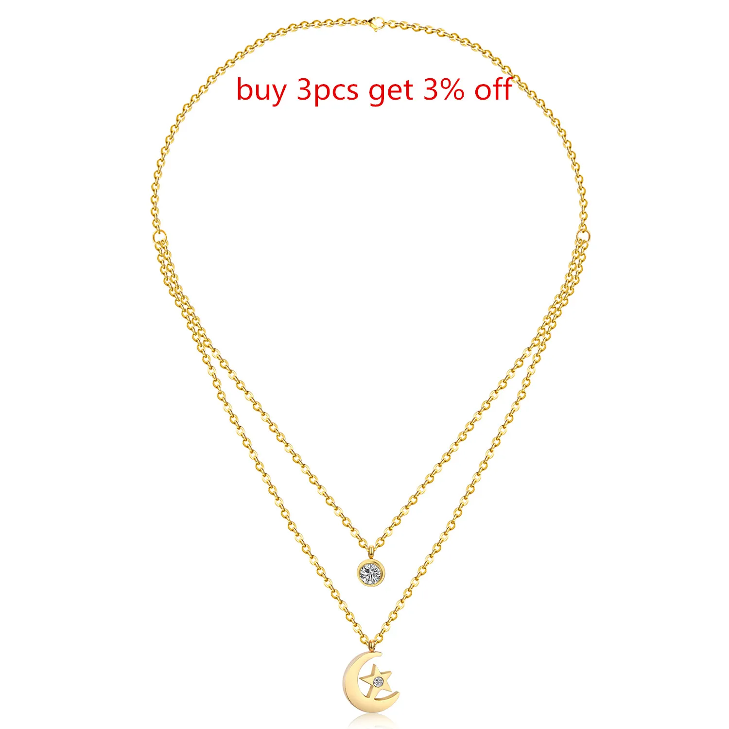 Модное женское ожерелье LUXUSTEEL с подвеской в виде Лунымузыкальной нотыискусственной кожи с двойной цепочкой золотогостального цвета очаровательное хрустальное ожерелье с подвеской