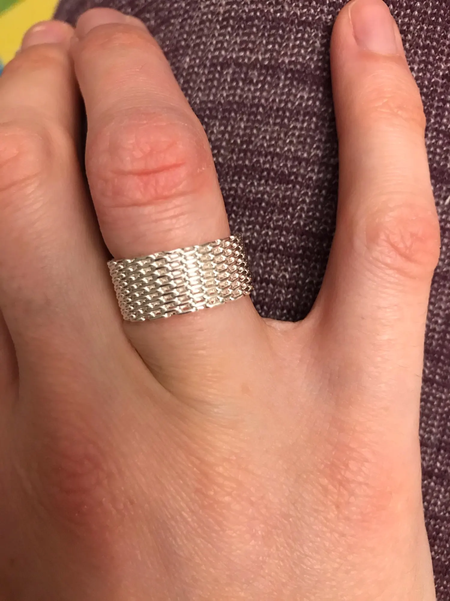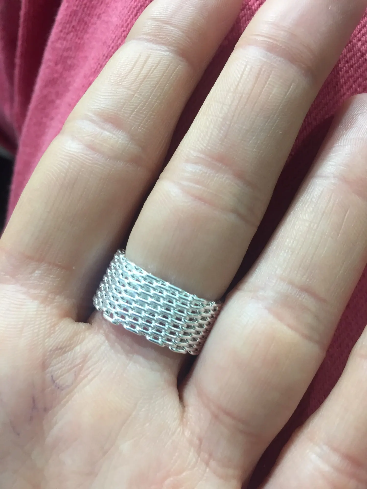 На фото кольцо выглядит дорого. На самом деле оно проще. По краям сильно цепляет и деформируется. Но я носила 3 дня его, окружающим очень нравилось, подруги спрашивали где такое купила. Так что ищу точно такое же кольцо как на картинке, хорошего качества.