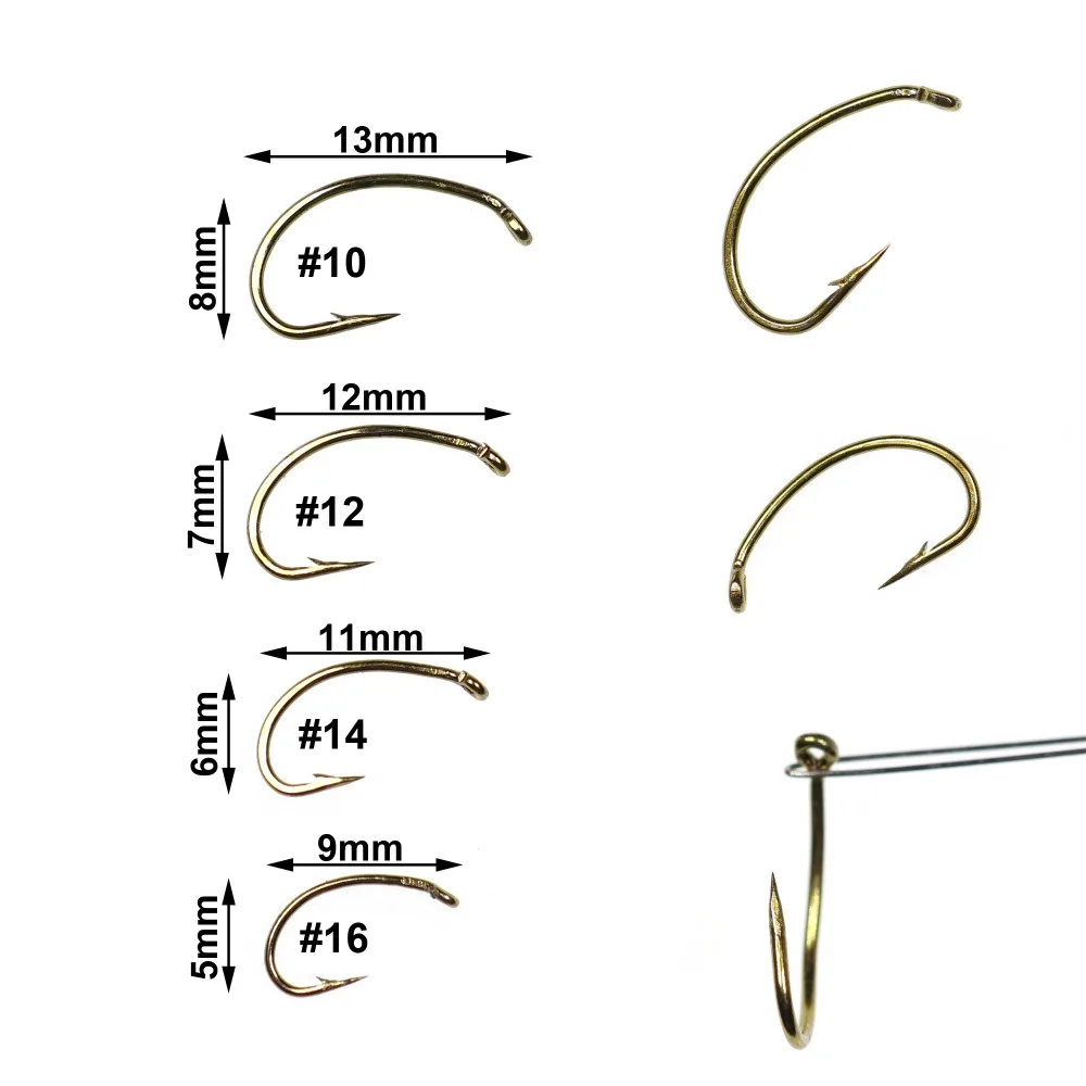 Wifreo 500 шт. крючок для мух Нимфа Жук креветки куколки личинки Caddis крючки для вязания рыбы #10 #12 #14 золото бронза острые оптовая продажа