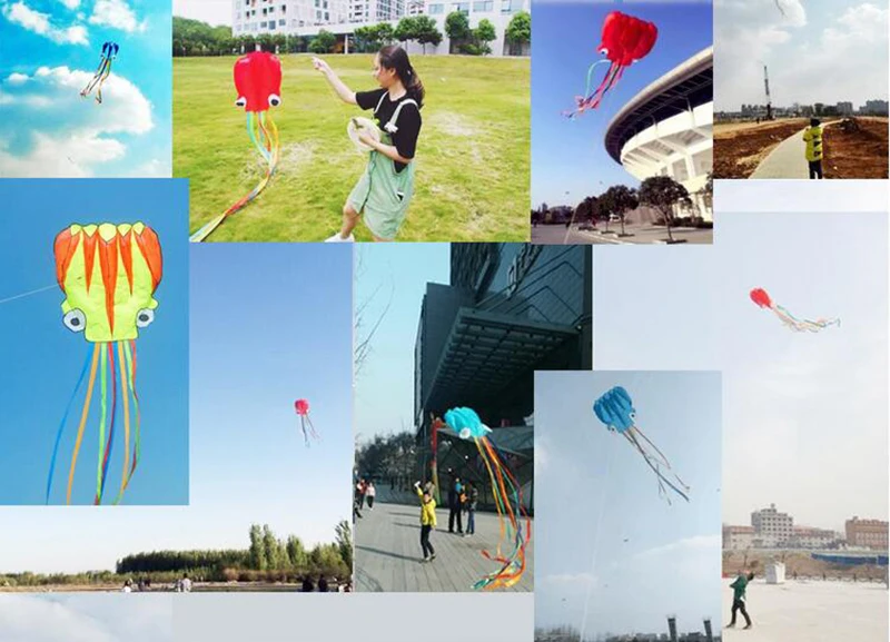 Бесплатная доставка, большой мягкий воздушный змей-Осьминог с ручкой, уличные игрушки, Летающий воздушный змей, фабрика, нейлон, ripstop, развлечение для всей семьи