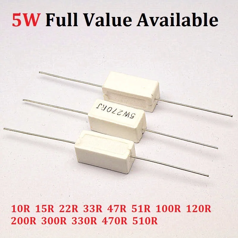 10 шт.лот 5 Вт 10R15R22R33R47R51R100R120R200R300R330R470R510R 5% цементный резистор 5W51R сопротивление цементных резисторов