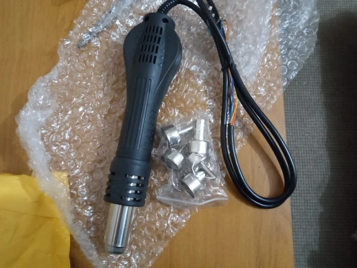 Отличного качества фен! Пластик очень качественный, приятный, смыкается все без щелей и неровностей, отверстия вентиляции все без облоя, прорезаны четко, ничего не мешает, внутри турбинка на 24в с мягкой "силиконовой" направляющей для потока воздуха, геркон приклеен, провода мягкие, провода нагревателя чуть толще чем остальные, на фото не так видно, а на глаз видно разницу. Пришло довольно быстро. Насадок в комплекте 5шт! Прекрасная ручка!