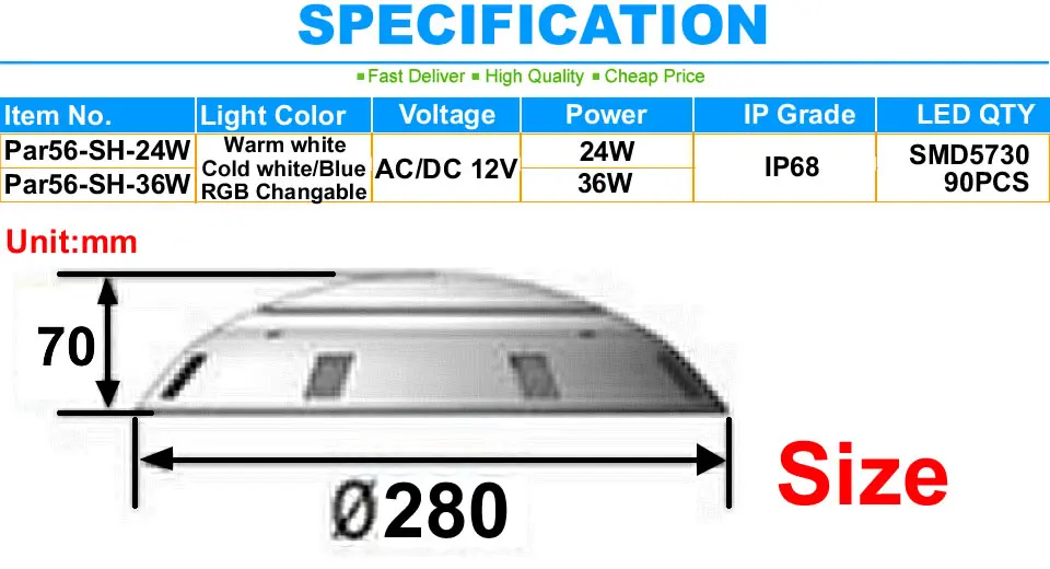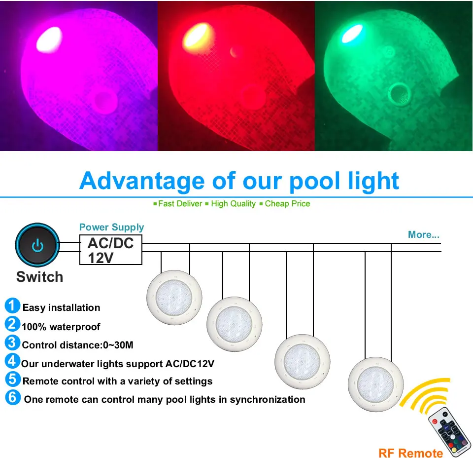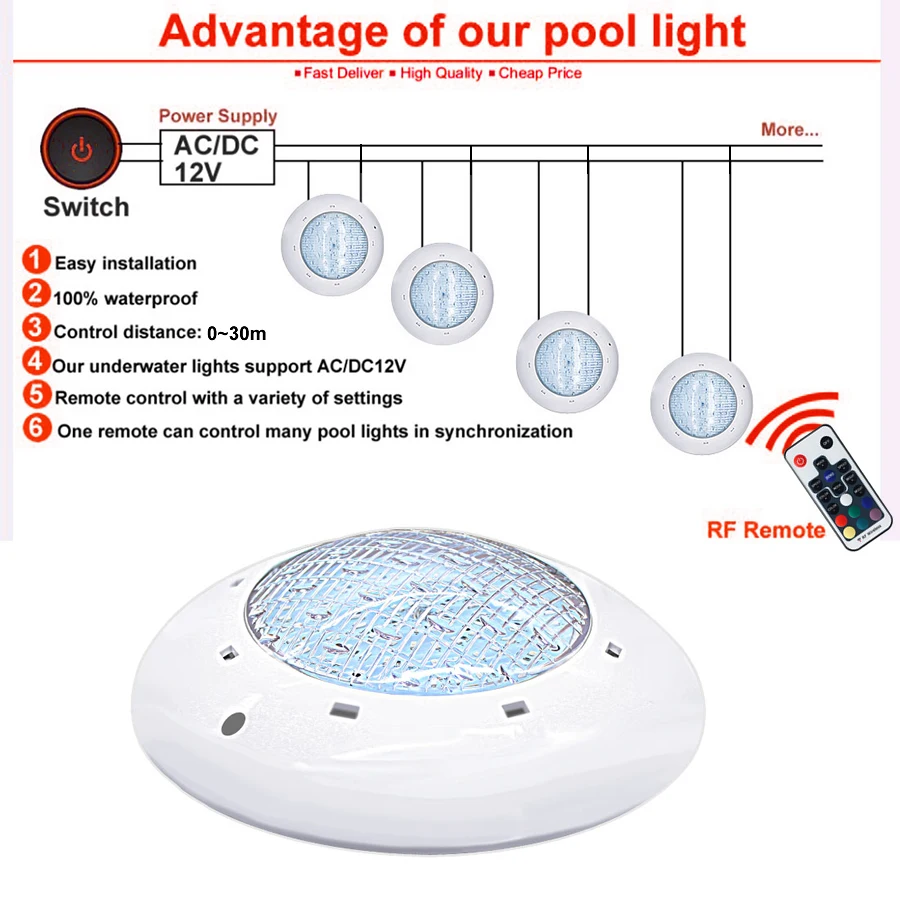 Водонепроницаемая светодиодная подводная лампа для бассейна, 12 В, Ip68, 24 Вт, 36 Вт