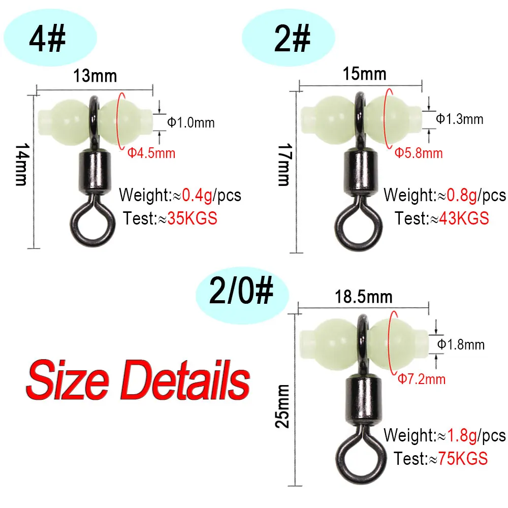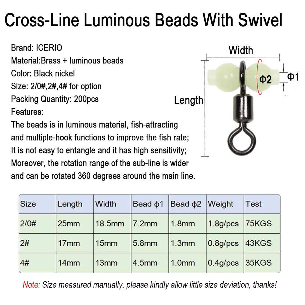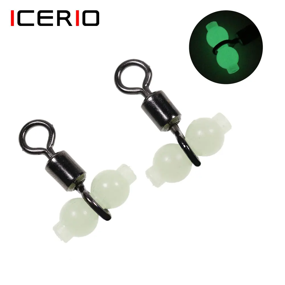 ICERIO 200 шт рыболовное судно роликовых вертлюгов с со светящейся бусиной рыболовное судно 3-Ходовой Поворотный шарнир Вертлюги установки разъем рыболовный крючок