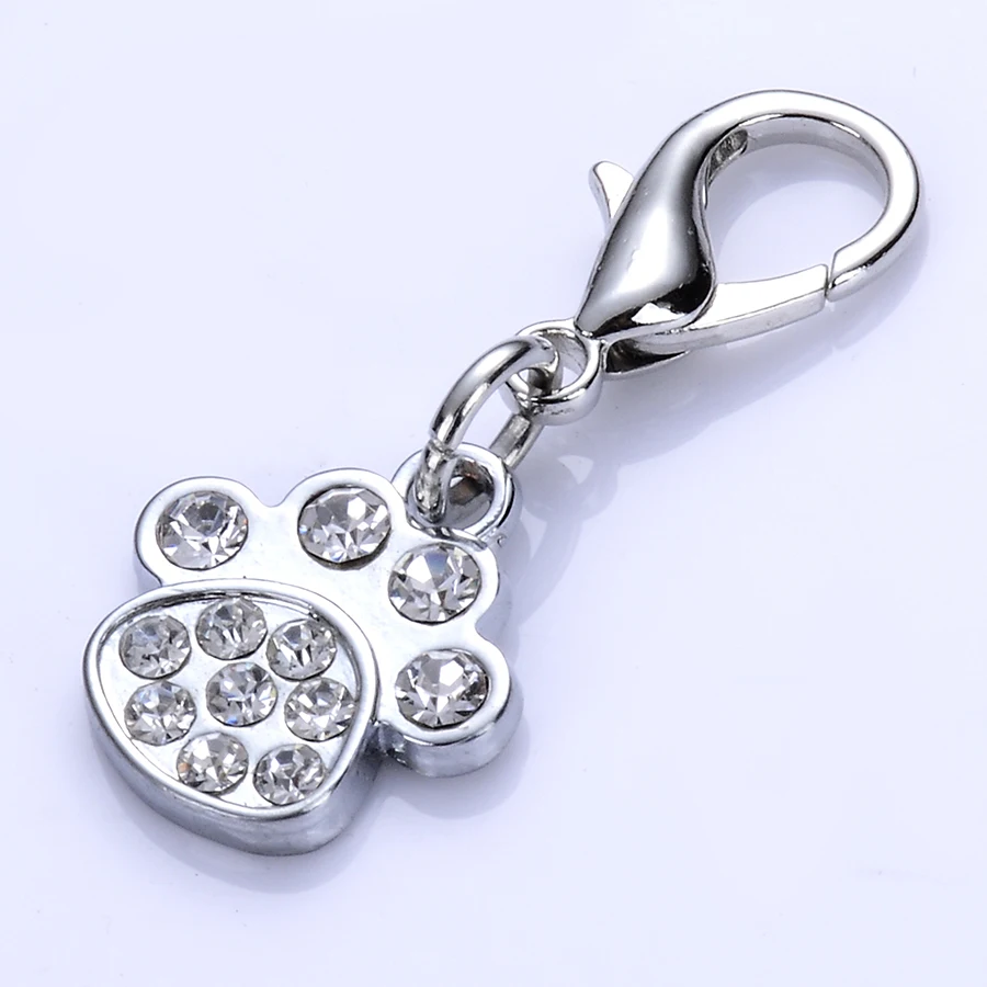подвеска кулон для собак ошейник аксессуары Красный белый горный хрусталь Dog Tag Кристалл paw форме подвески для собаки Pet Jewelry Кулон собака аксессуары товары для животных