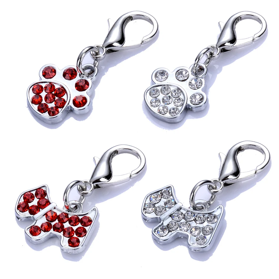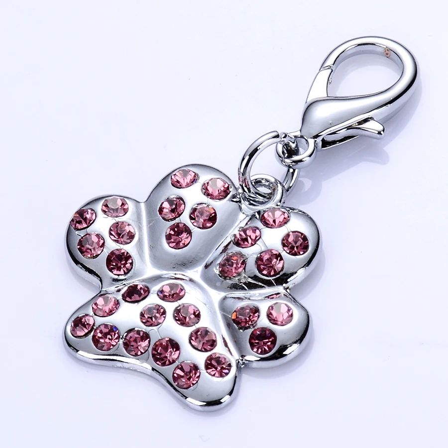 подвеска кулон для собак ошейник аксессуары Горный хрусталь Подвески dog tag лапу Талисманы для собак Воротники застежкой омар ювелирные изделия Аксессуары Товары для домашних животных Розовый сине-белые Цвет