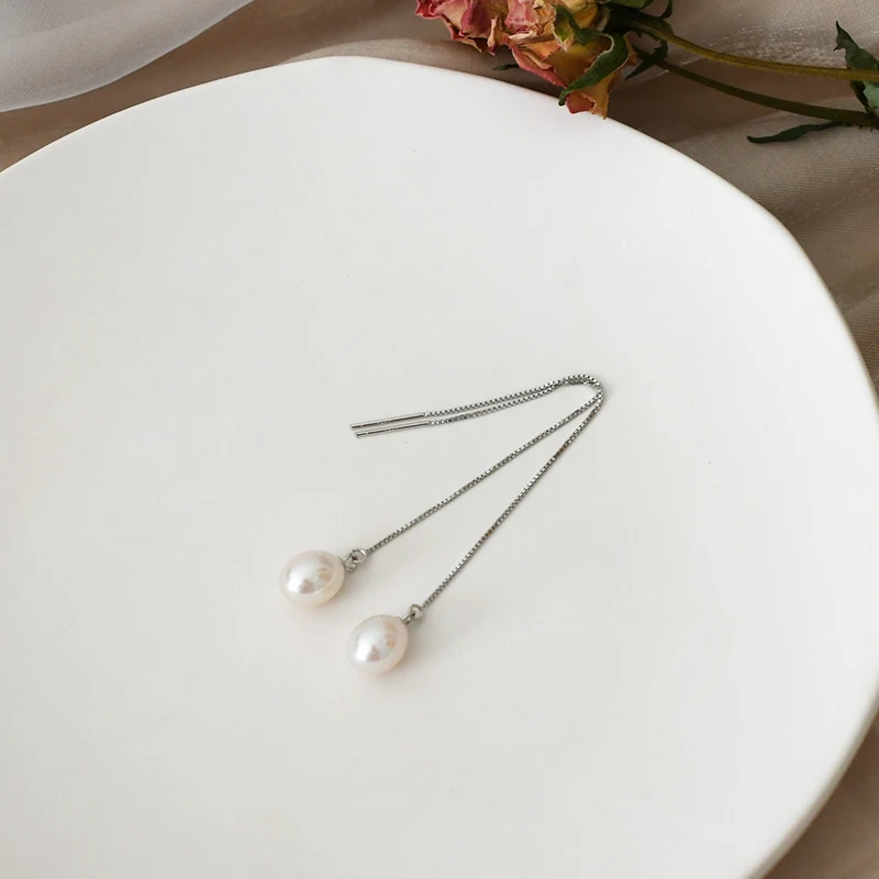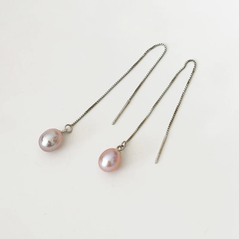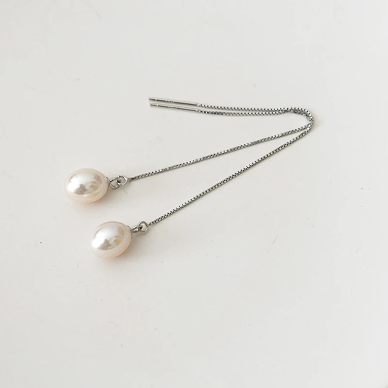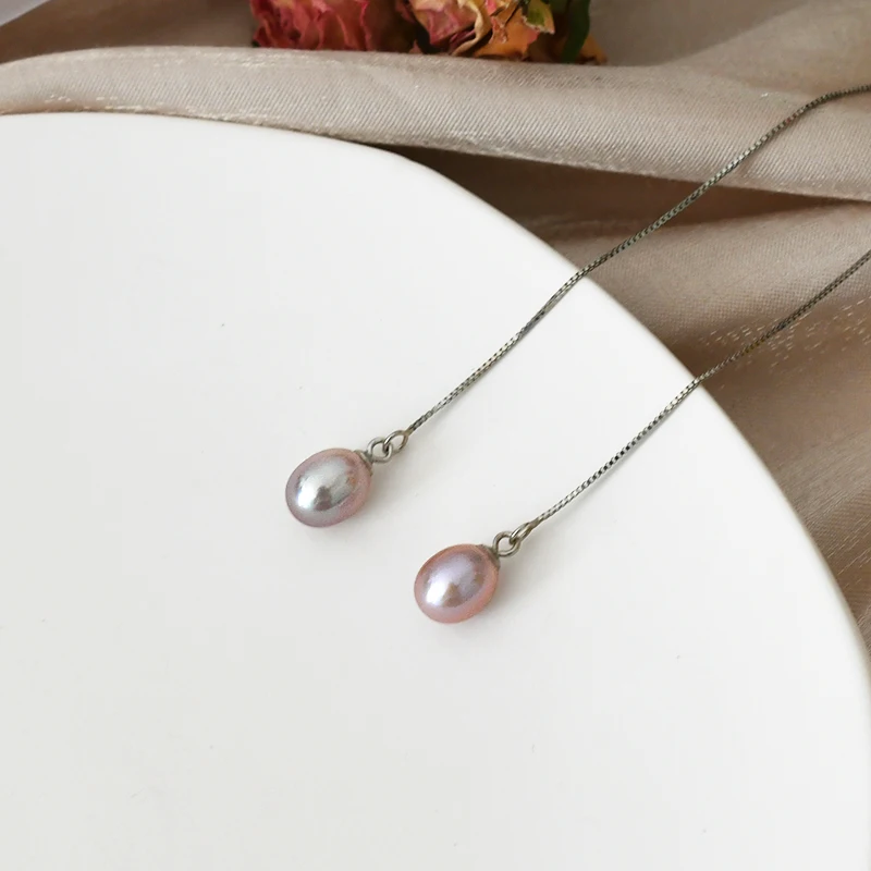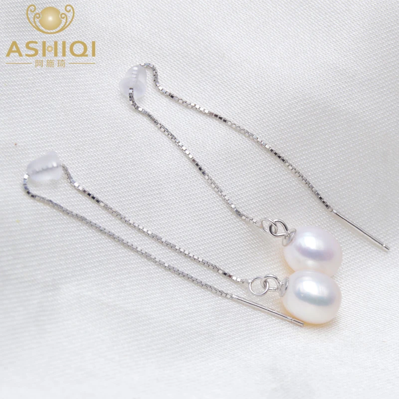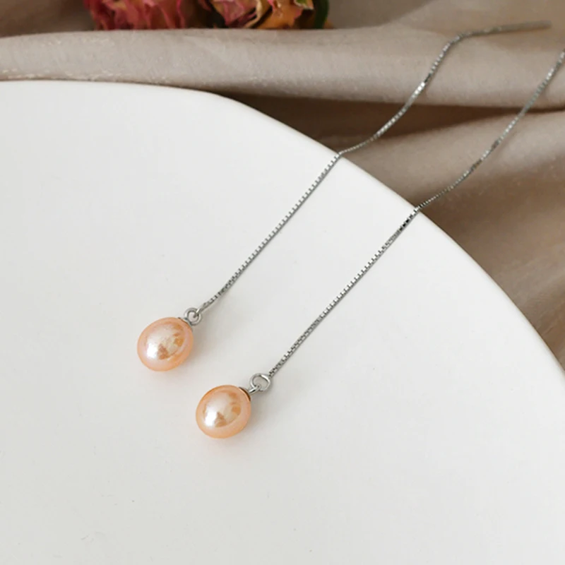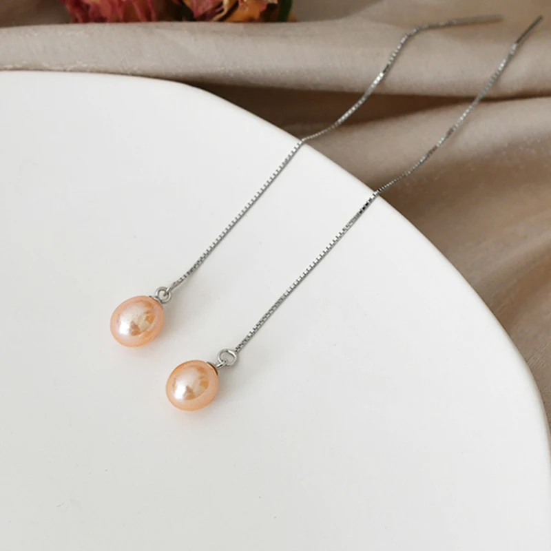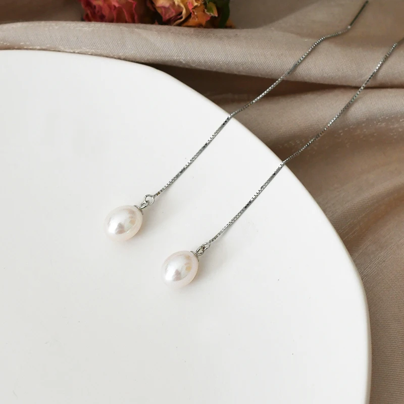 Женские длинные серьги из серебра 925 пробы с натуральным пресноводным жемчугом, 7-8 мм