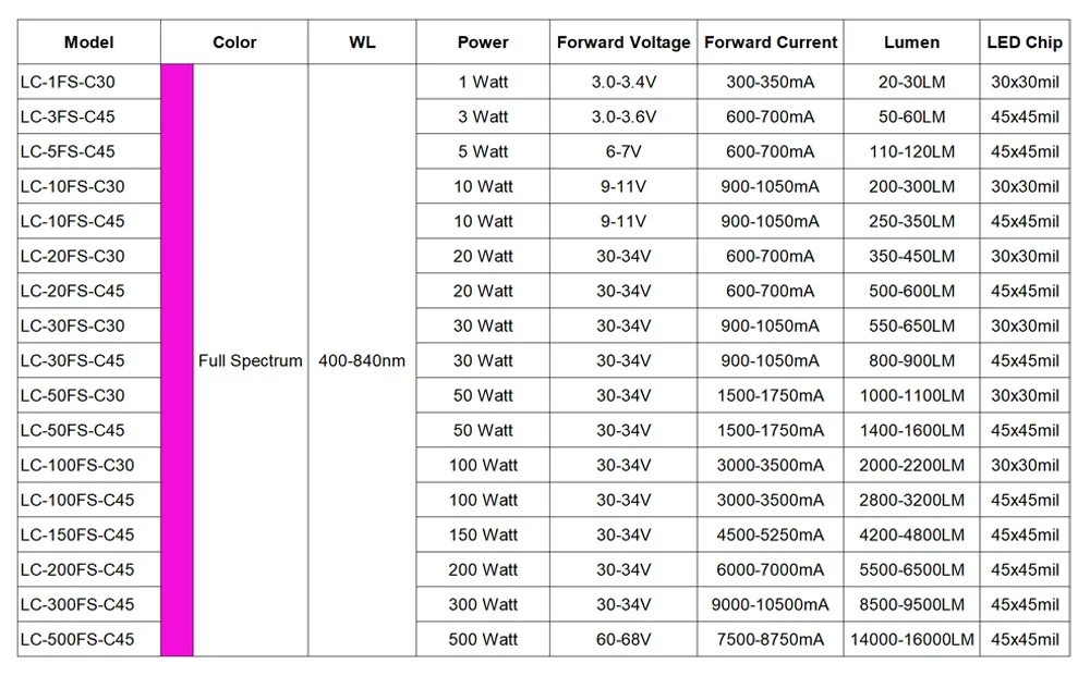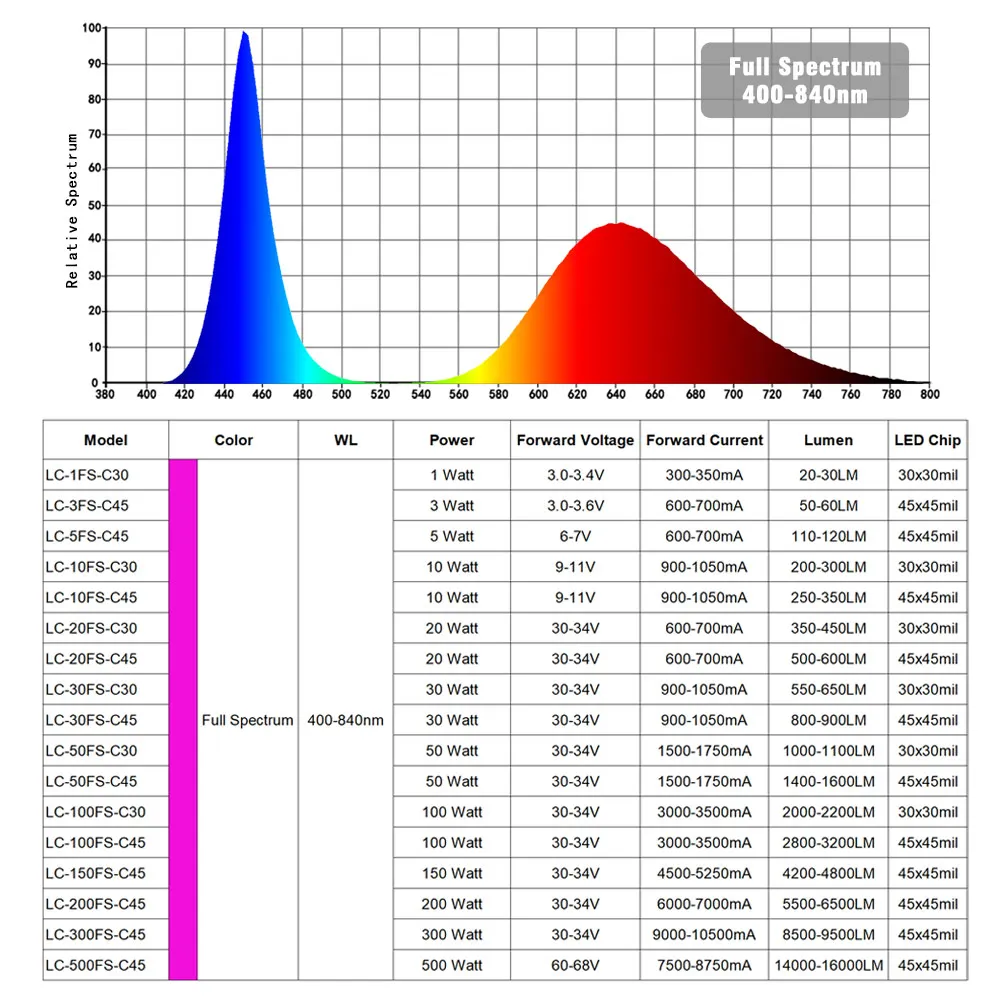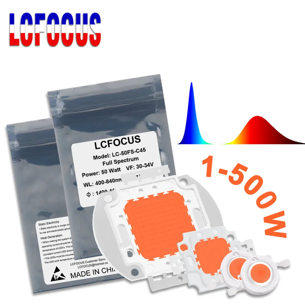 Светодиодный чип высокой мощности, светильник сделай сам полного спектра для выращивания овощей, фруктов, растений, 1 Вт, 3 Вт, 5 Вт, 10 Вт, 20 Вт, 30 Вт, 50 Вт, 100 Вт, 300 Вт, 500 Вт, 400-нм