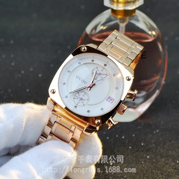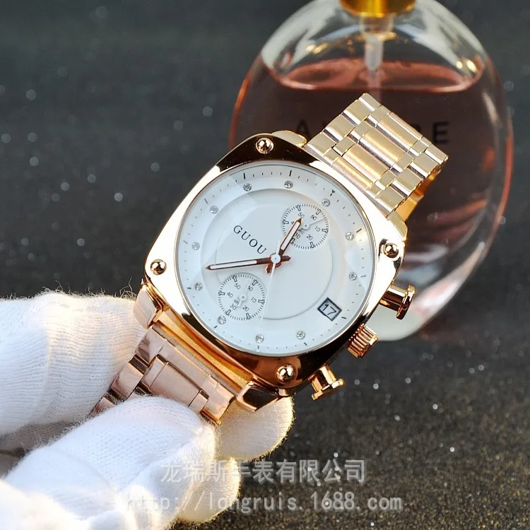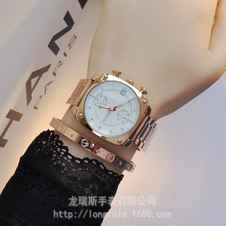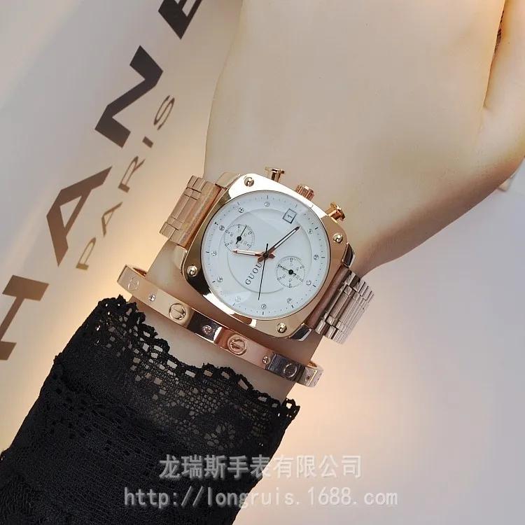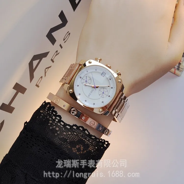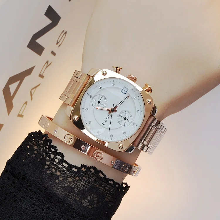 2016 стильные модные брендовые часы женские полностью роскошные золотистые Стальные Ремешки квадратный циферблат Кварцевые женские часы с календарем женские часы