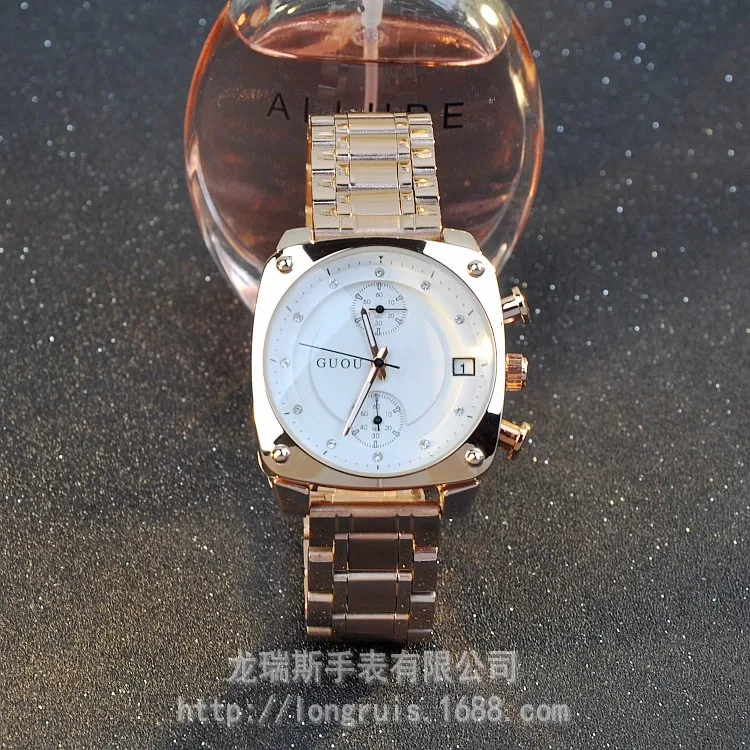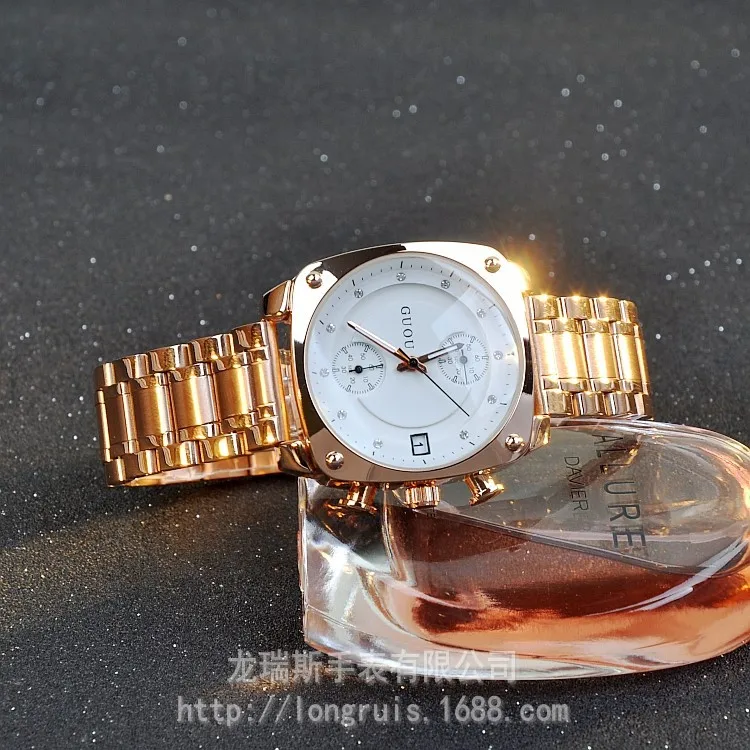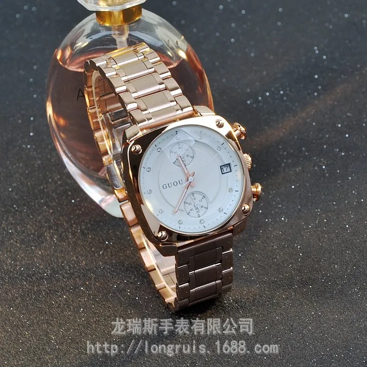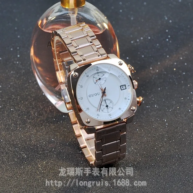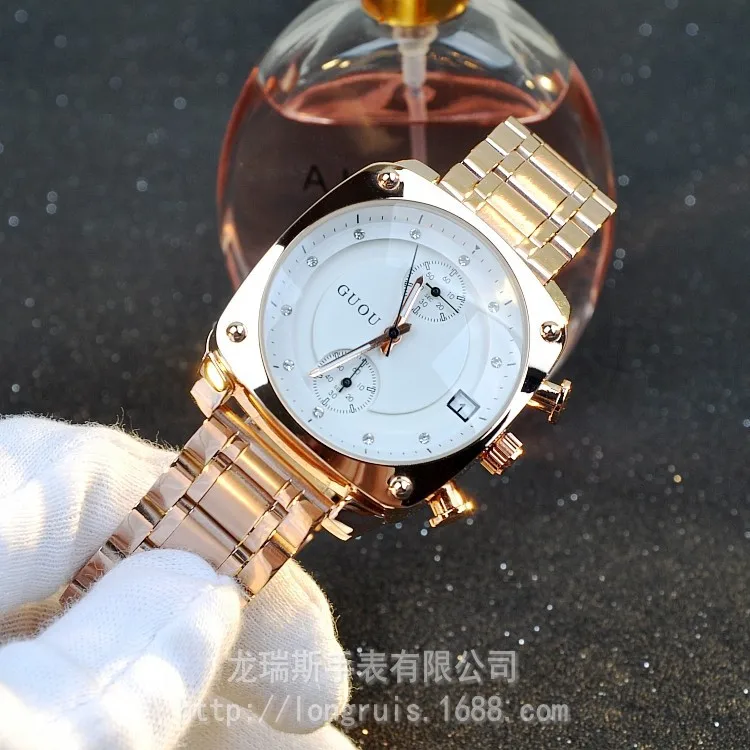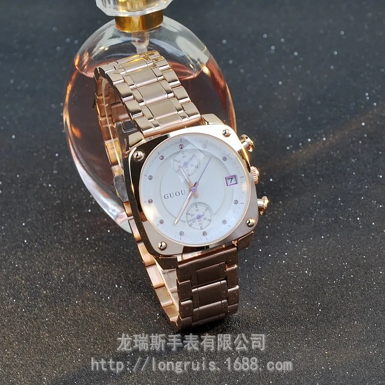 2016 стильные модные брендовые часы женские полностью роскошные золотистые Стальные Ремешки квадратный циферблат Кварцевые женские часы с календарем женские часы