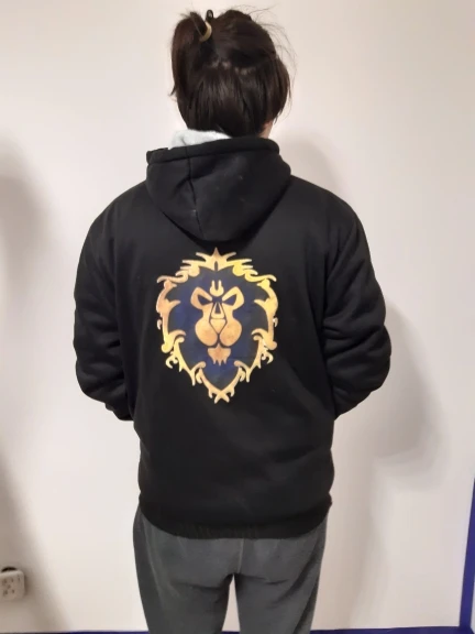 Толстовка теплая и удобная, размер M на 1,74 сел хорошо. Только надпись то вроде неверная (у орды), должно быть "watching" вместо "tricking".