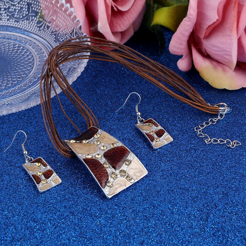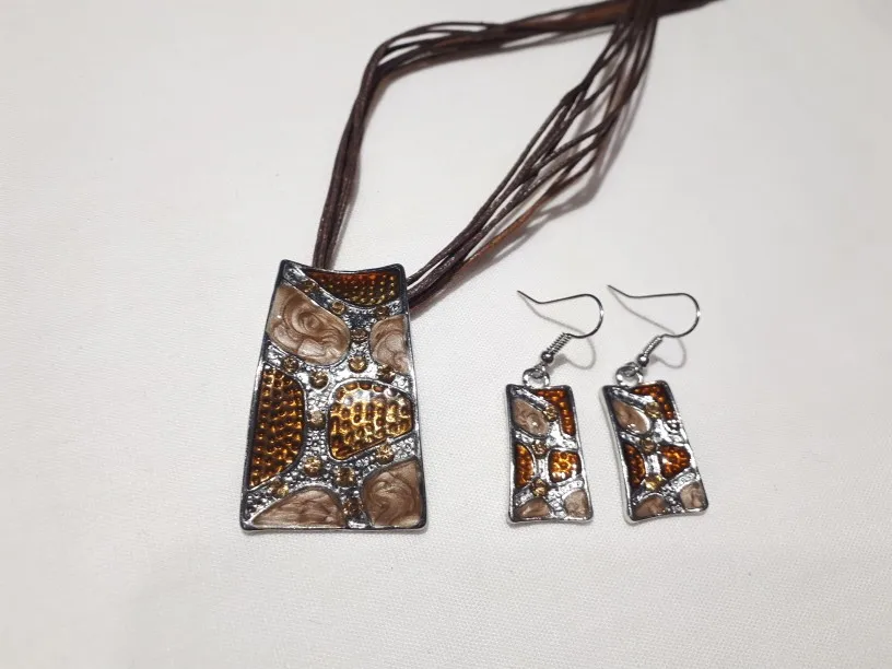 Комплект из колье и серёг, с подвеской геометрической формы