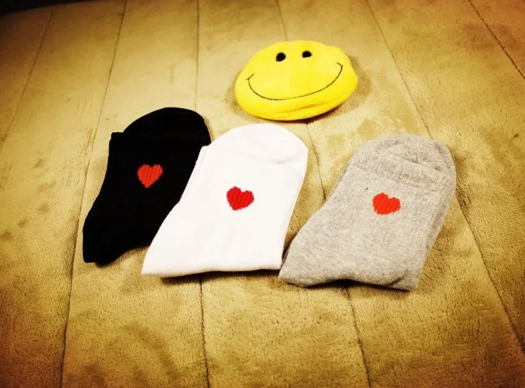 Женские простые базовые носки Halajuku, с красным сердцем, в стиле колледжа