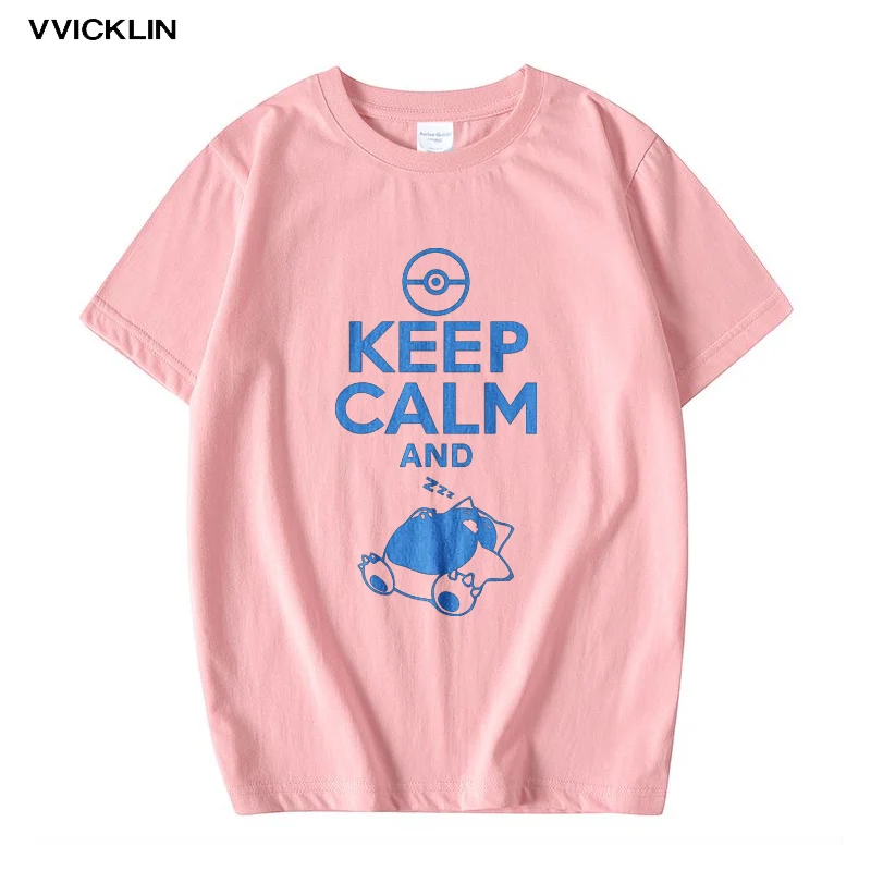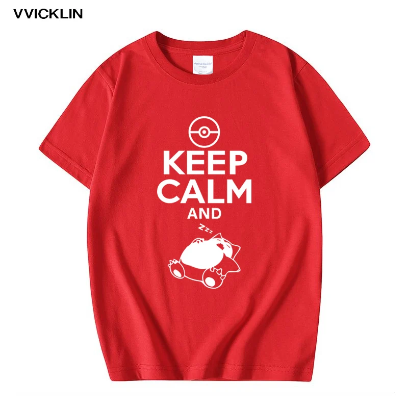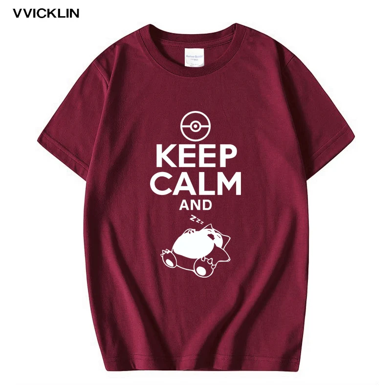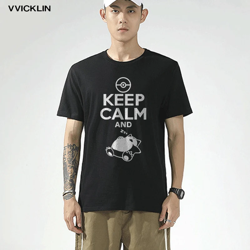 Новинка, Модная хлопковая Футболка в стиле аниме, Повседневная футболка с музыкальной группой рок-н-ролл, Одежда большого размера для сна с надписью Keep Calm and Carry on Snorlax