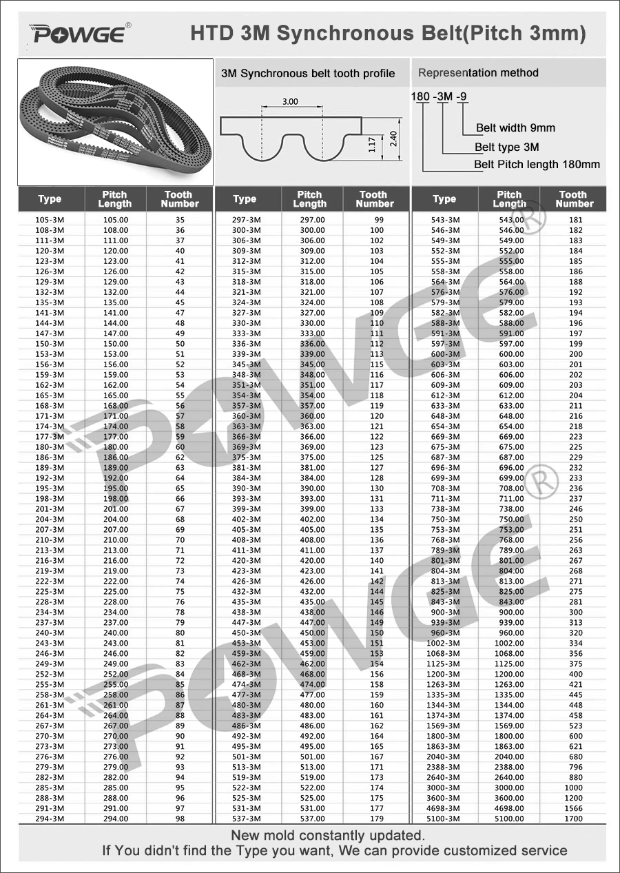 Если вам нужны Synchornous ремни HTD3M в замкнутом ремне,Пожалуйста, свяжитесь с нами. Мы можем отрезать любую ширину ремней.