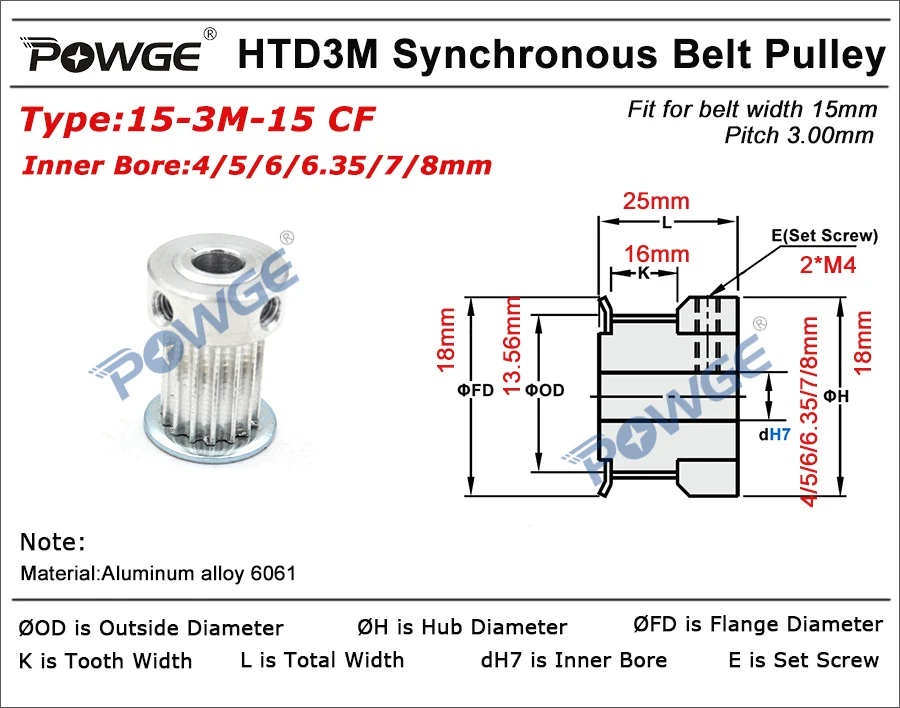 Алюминиевый сплав15 зубьевЗубцы дуги HTD 3 м шкив Timimg Диаметр 4/5/6/6.35/8 мм15-3M-15 BFforШирина 15 ммHTD 3 м Синхронный шаг ленты 3 мм Лазерная Гравировка CNC машина 15 зубьев 15T 3M шкив