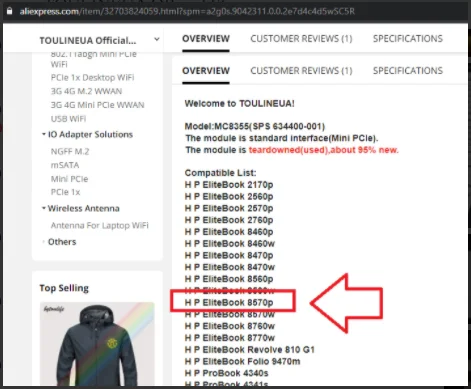 Модуль является стандартным интерфейсом (Mini PCIe).