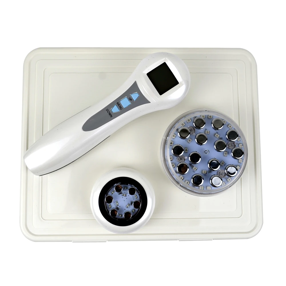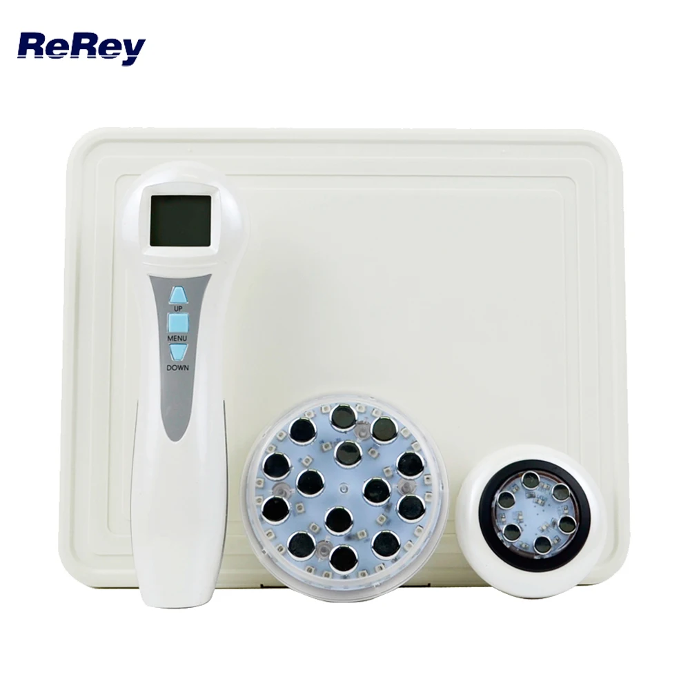 1. Регенерация коллагена с РЧ-стимуляциейРадиочастота (RF)-высокая частота. Это терапия термического проникновения. Через проводящую головку RF, он передает своего рода электромагнитную энергию, вызванную высокочастотным изменением переменного тока в подкожную клеточку. Он будет проводить тепло через 4 точки, и люди будут чувствовать себя немного тепло во время лечения. RF терапия может стимулировать регенерацию коллагена дермы, увеличить толщину и плотность дермы, поднимать и заполнять морщины, устранять шрамы и восстанавливать эластичность и блеск кожи, убедитесь, что лицо выглядит симметрично и естественно. Это безопасно, надежно и без вреда для кожи.2. EMS электропорацииНепосредственно воздействует на кожу, мгновенно усиливает проникновение тканей кожи. При функции электрошока образуются отверстия в липидной мобилизации клеток, в то же время молекула гидрофила, которая не была поглощена, может проникать внутрь клеток. После формирования отверстий, в течение нескольких секунд до нескольких минут, он будет держать отверстие в соответствии с длиной электрошока. Проникновение в глубокий коллаген кожи, гиалуроновая кислота, такие как косметические ингредиенты, EMS лечение является передовым методом, широко используемым в области красоты, в сочетании с традиционной китайской иглой терапия стимулирует специальную точку (китайская акупунктура), имитирует массаж, постукивание, китайский выскабливание, акупунктура, это займет следующую функцию: похудение, улучшение метаболизма, Специально для уменьшения целлюлита. Для работы необходимо наносить средства по уходу за кожей.3. Фотонная терапияА. Био красный светильник: длина волны 625 ± 3 Нм (28 светодиодов): красный светильник, проникающий 8-10 мм, подходит для любого типа кожи; Он может достигать дермы для стимуляции клетчатых клеток. Нагрев может улучшить кровообращение и коллаген альбумена гиперплазии, чтобы уменьшить морщины и сделать кожу более упругой и гладкой. Мягкая длина волны подходит для окружающих глаз и лба.B. Био синий светильник: длина волны лазера 465 ± 3nm (9 светодиодов): синий светильник проникающий около 0,5 мм имеет удобный емкостный Мини-стилус, служащий также в успокаивая и против кожи сыпью; Подходит для кожи, которая чувствительна, жирная и с высыпками кожи. Он может регулировать секрецию кожного сала, эффективно избавляться от акне и волка, чтобы достичь цели украшения. Кроме того, синий светильник может встраивать и затягивать ослабленную кожу.4. Упаковочный листОсновная машина * 1 шт.Рабочая головка корпуса * 1 шт.Лицевая рабочая головка * 1 шт.Адаптер переменного тока * 1 шт.Инструкция пользователя * 1 шт.