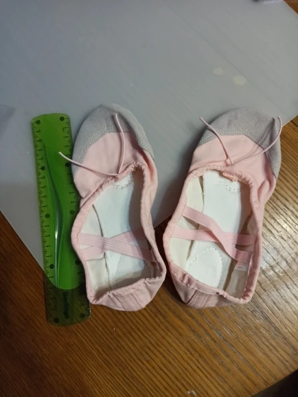 Очень классные балетки! они на ножку 20 см, у нас пока 18 только, поэтому перезаказала точно такие же, но размер 30, а эти оставлю на будущее. понравились вставочки на следах и носике, а так же качественный пошив- даже стельки аккуратно обметаны. Спасибо!