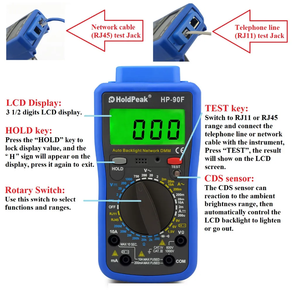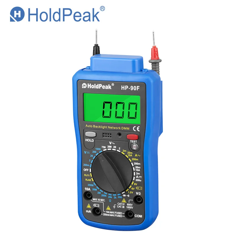 Цифровой мультиметр HoldPeak HP-90F, цифровой сетевой мультиметр HoldPeak HP-90F с тестом телефонной линии и сетевого кабеля