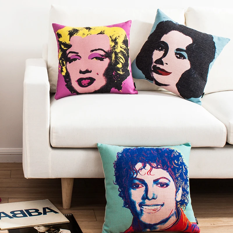 Наволочки ручной работы в стиле знаменитостей, чехол Майкл Джексон, Мэрилин, Монро, Элизабет, Тейлор, наволочки для диванных подушек, льняная наволочка