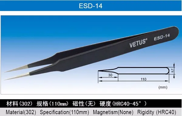 Щипцы для наращивания ресниц Vetus ESD из нержавеющей стали объемный пинцет, антистатические