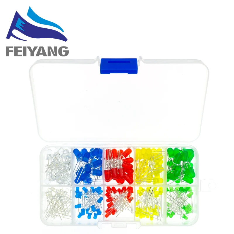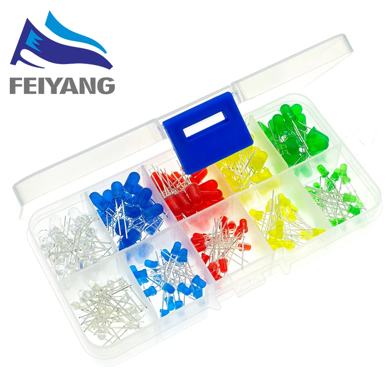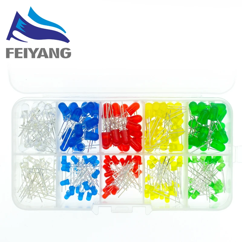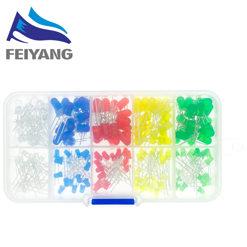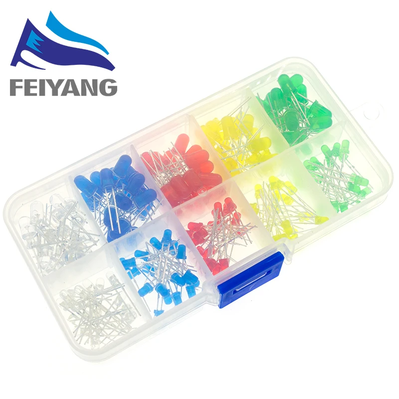 200 шт.лот 3 мм 5 мм светодиодный комплект с коробкой смешанные цвета красный зеленый желтый синий белый светоизлучающий диод в ассортименте 20 шт. каждый новый