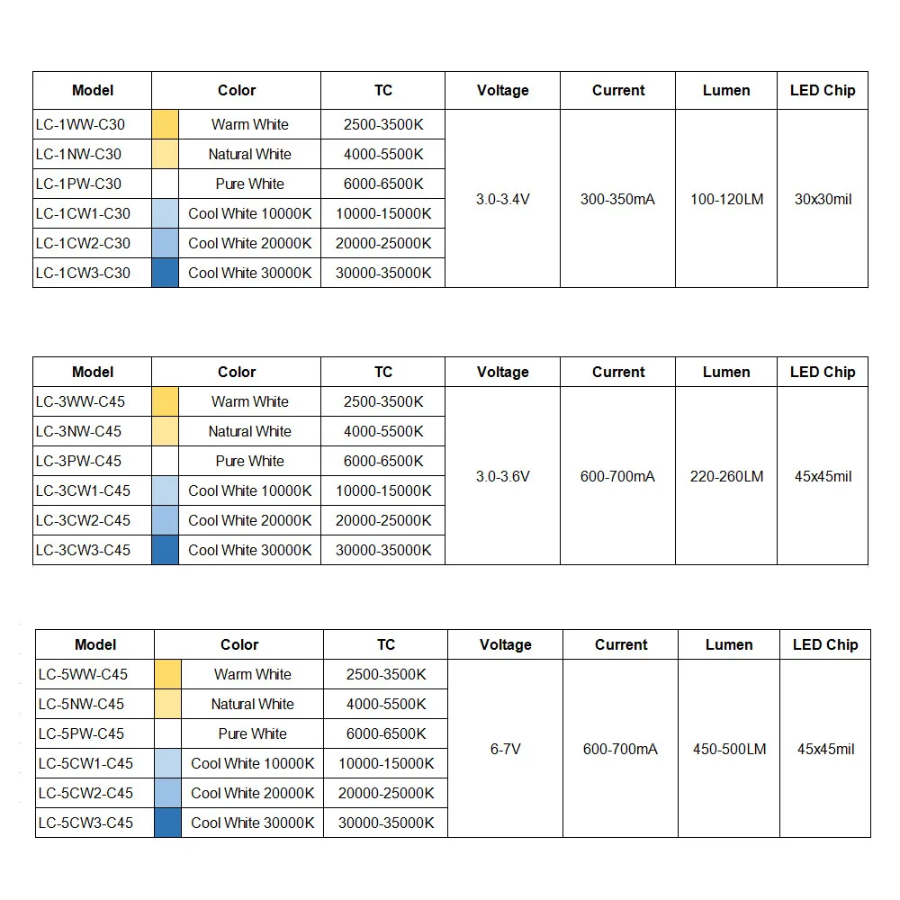 Color 3Cool White (20000-25000K) / Cool White (30000-35000K)