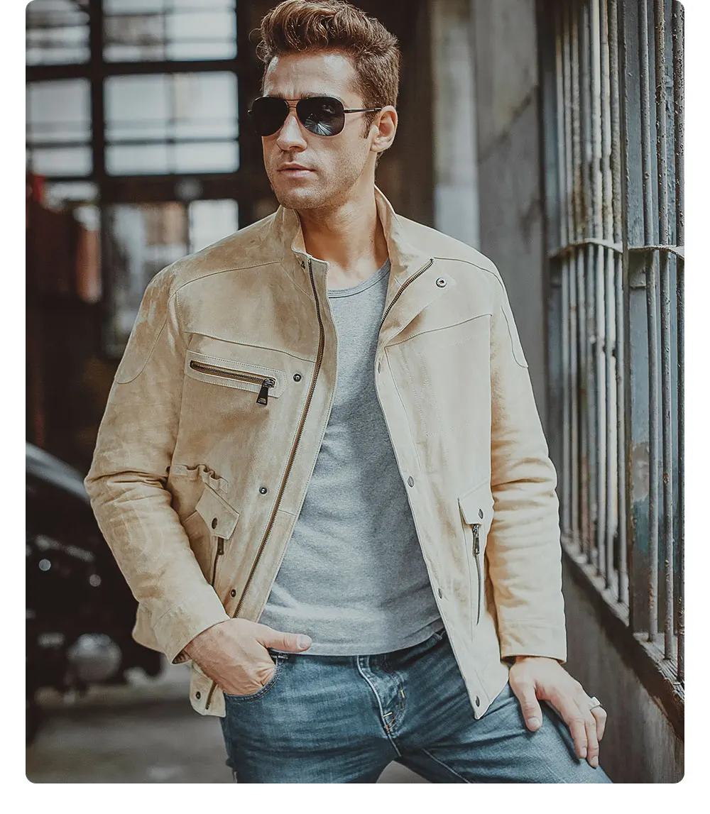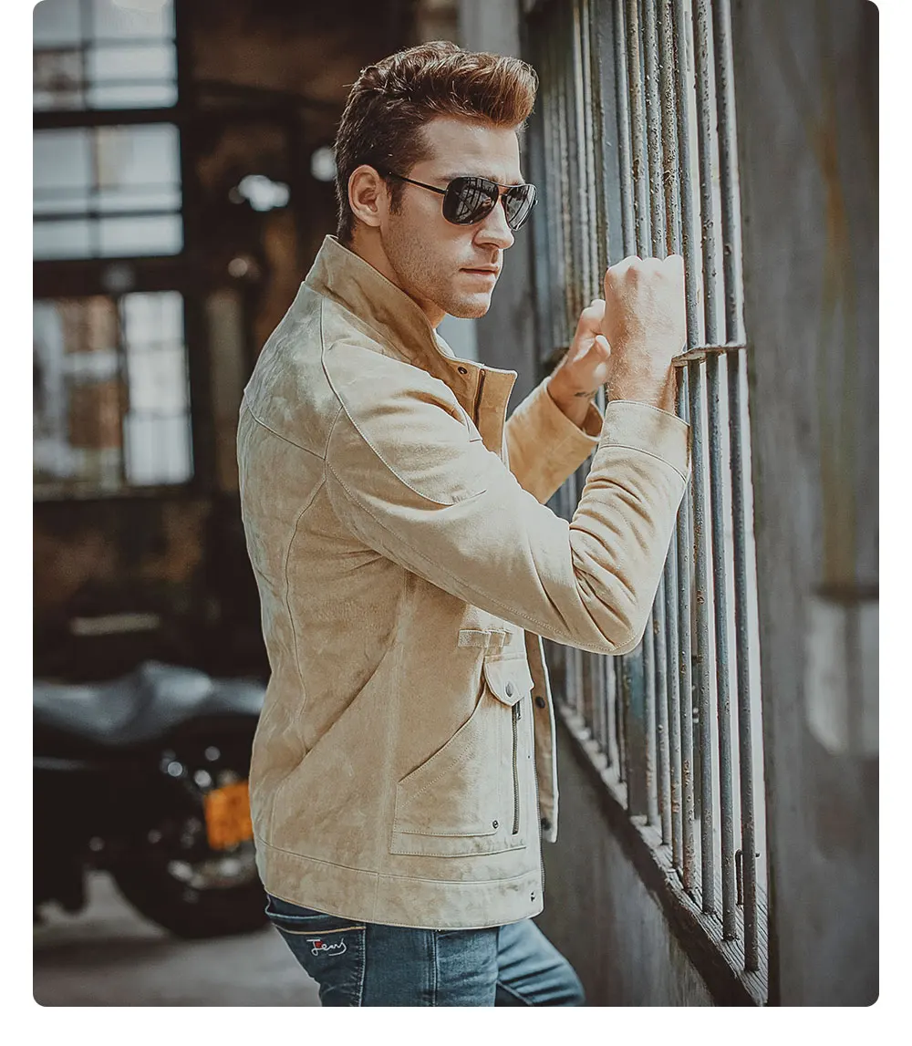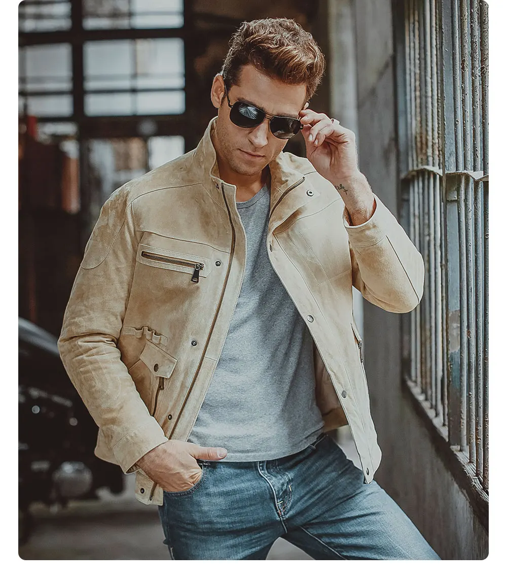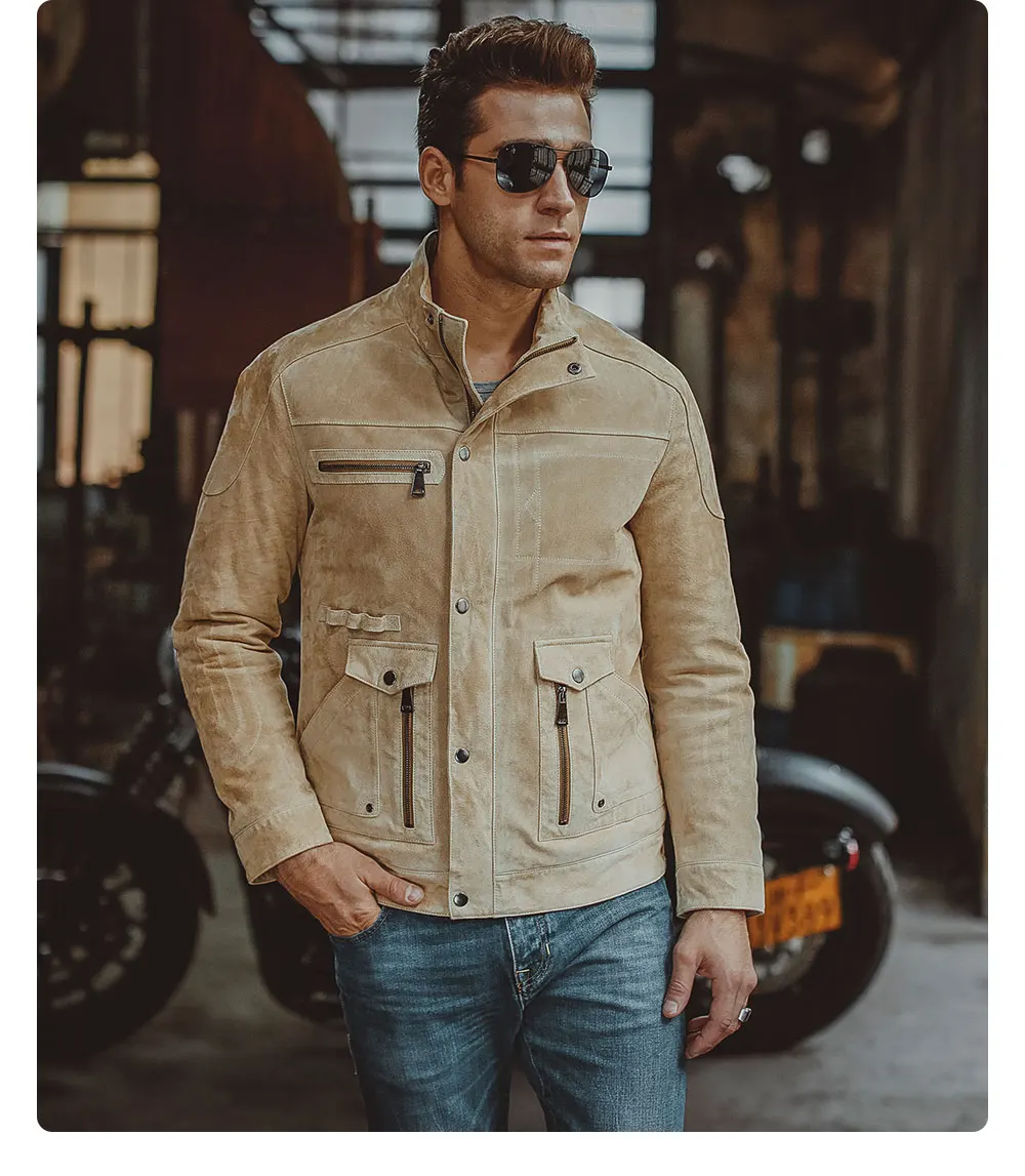 Kожаная куртка мужская мотоциклетные жакеты из свиной шкуры, из натуральной кожи, кожаное пальто бежевого цвета размером S-6XL для зимы