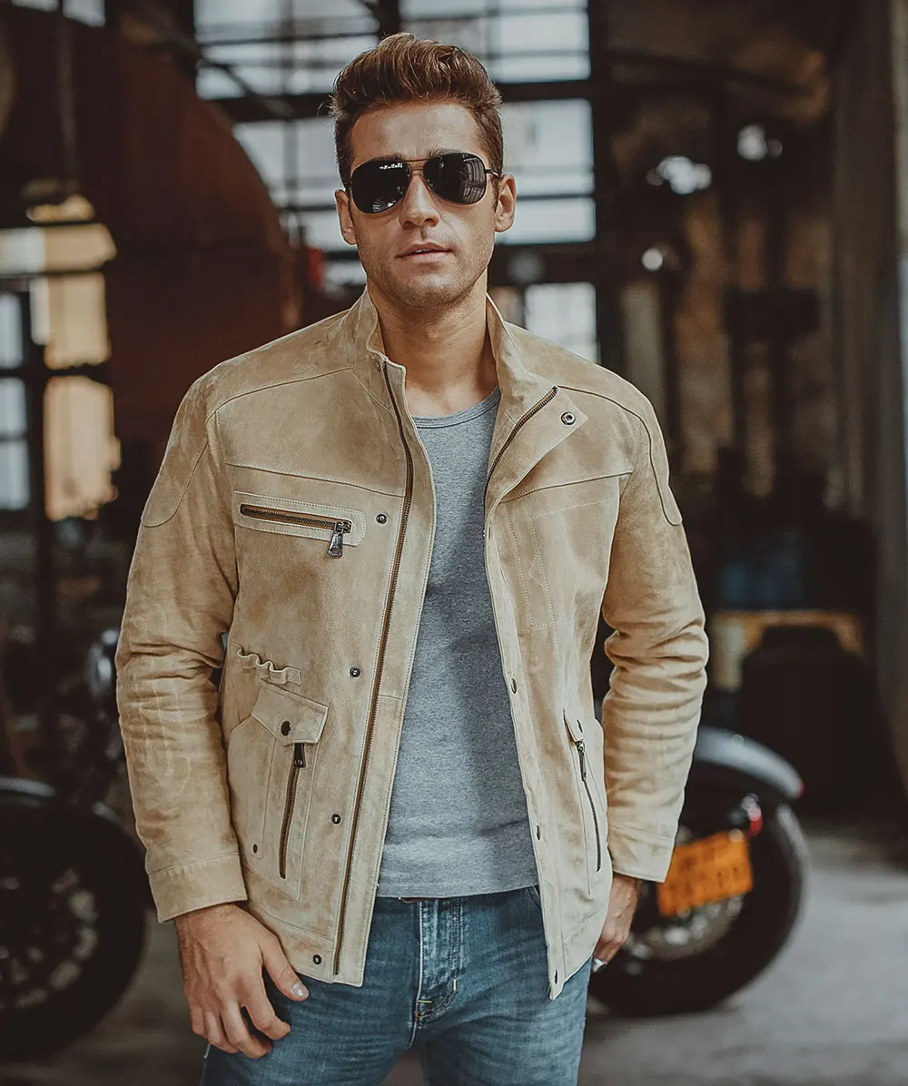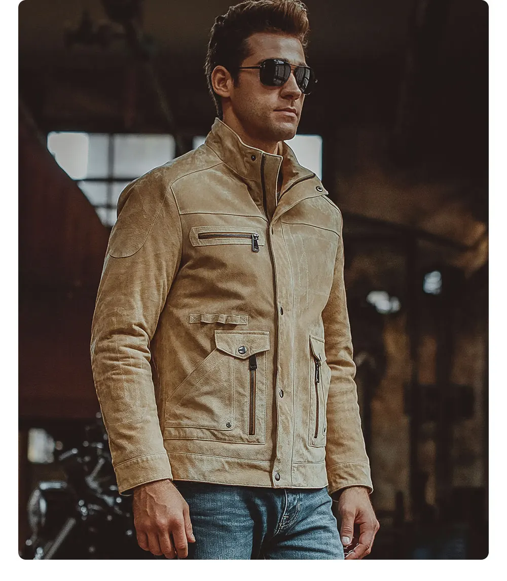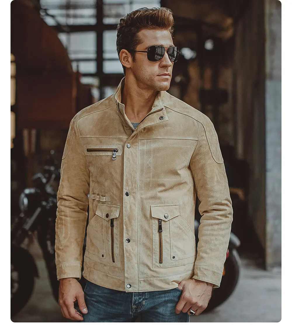 Kожаная куртка мужская мотоциклетные жакеты из свиной шкуры, из натуральной кожи, кожаное пальто бежевого цвета размером S-6XL для зимы