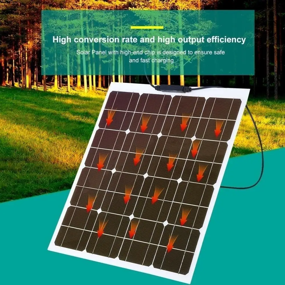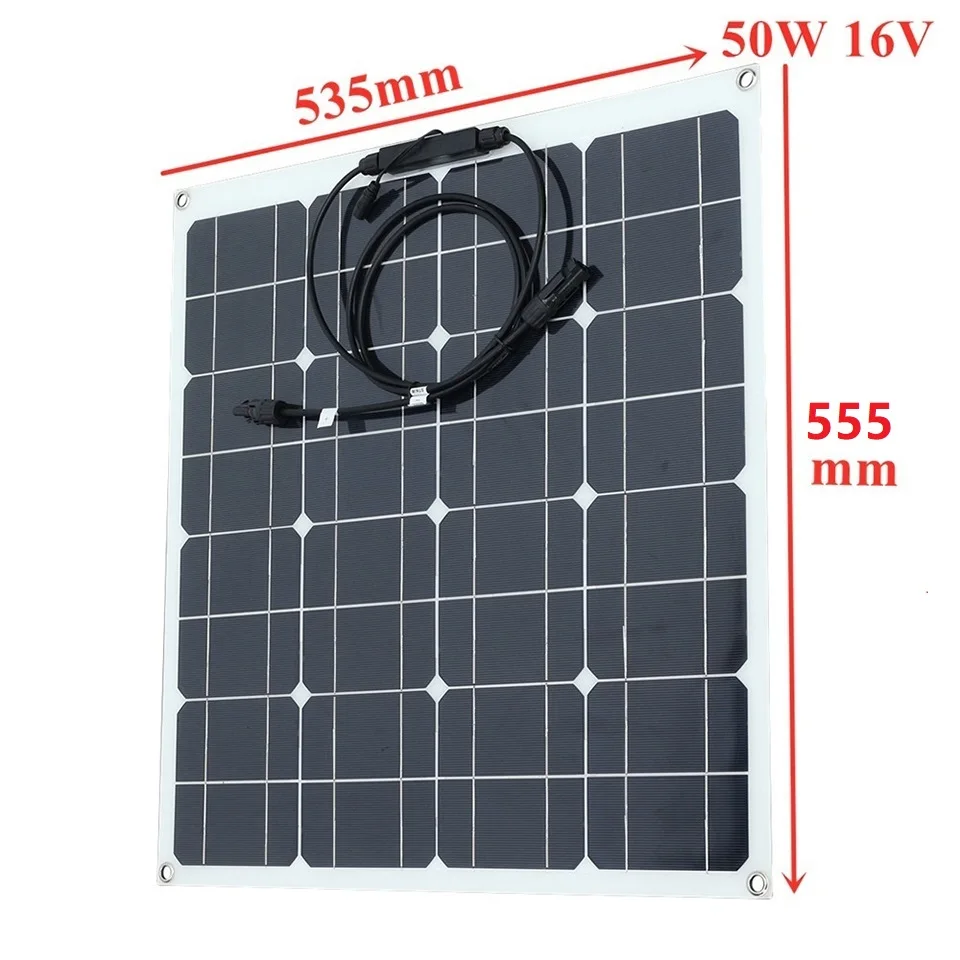 50W 12V 100W черный стекловолокна полу-гибкая монокристаллическая Панели Солнечные для 12 В зарядка Батарея на лодках, жилых автомобильных прицепах, дом на колесах,