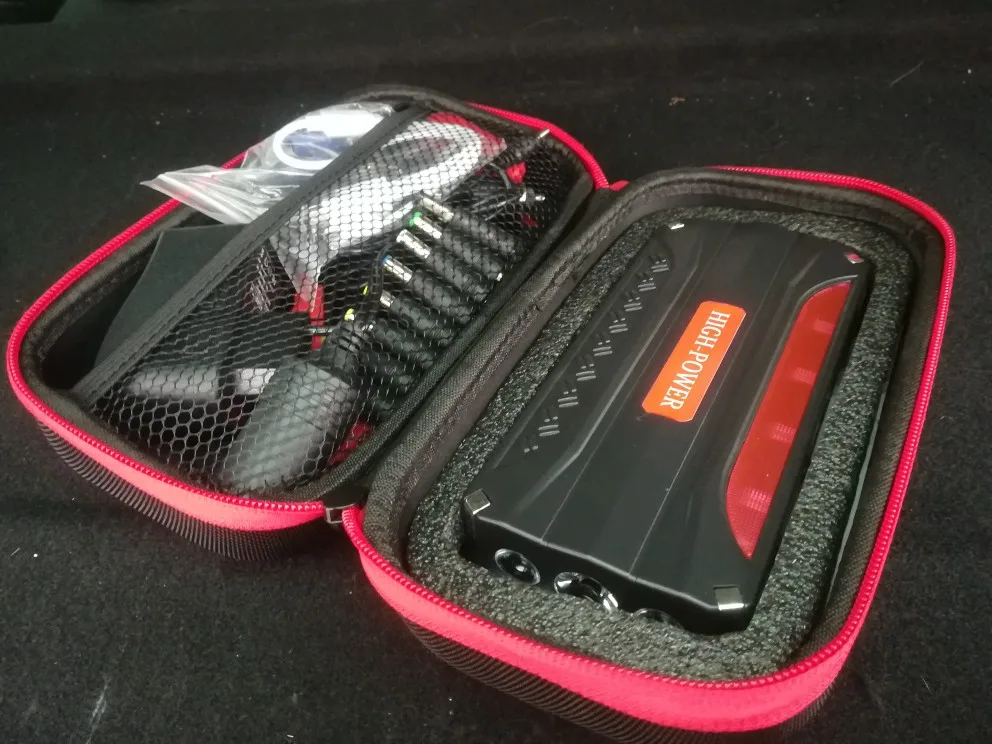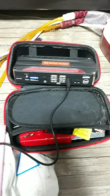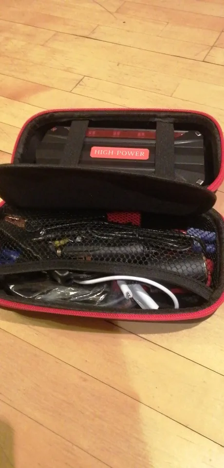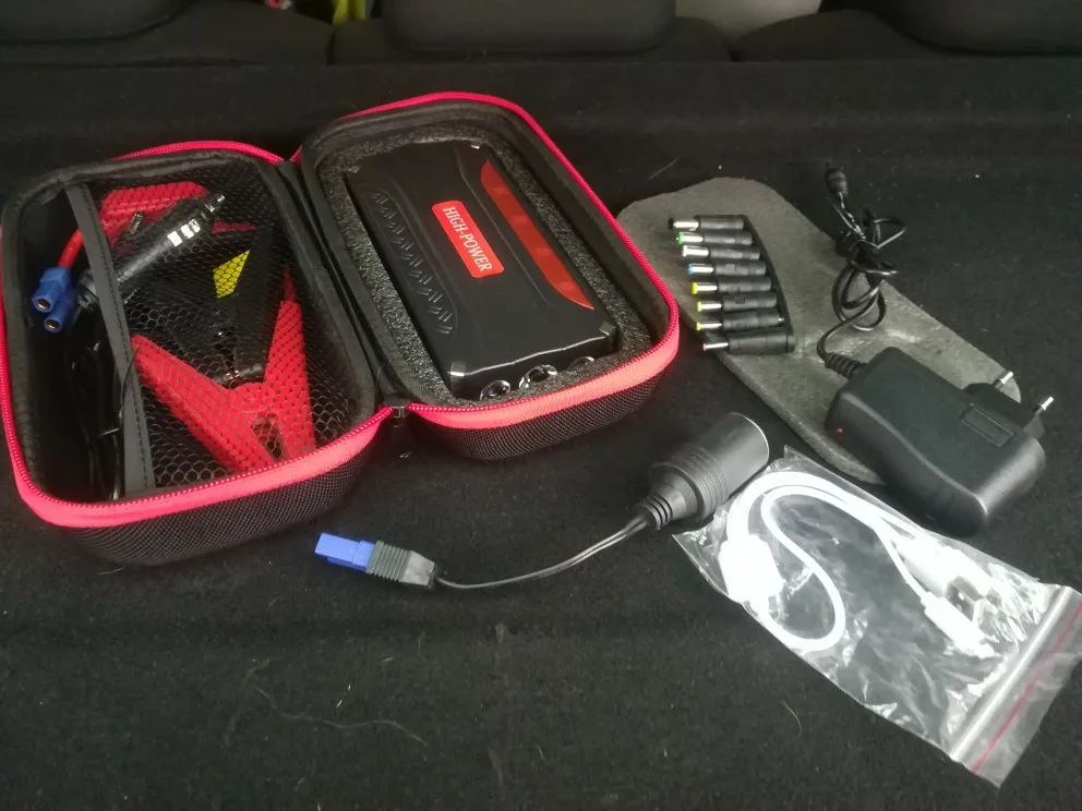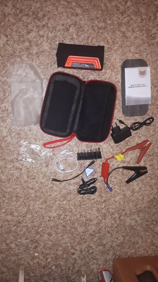 Заказ был отправлен через пару дней, ещё дня три ехал до меня (Мос.область). Был заряжен на 89%. Все функции работают, ноут заряжается, переходник подобрался. В тот же вечер запускал машину: -16 примерно, аккумулятор не крутит, только цикает, двери с кнопки не закрываются. Подключил устройство - двигатель запустился моментально. На запуски у меня тратилось примерно 5-10% от заряда за один пуск. Ёмкость у него конечно гораздо скромнее заявленной, это ощущения от зарядки телефона с аккумулятором 4000mA. Для запуска автомобиля подходит на 100%! Лишь бы прожил подольше) Отдельно хочу отметить чехол: компактный и без всякого кожзама. Правда, всю начинку я бы там не таскал, уж больно тесно)
