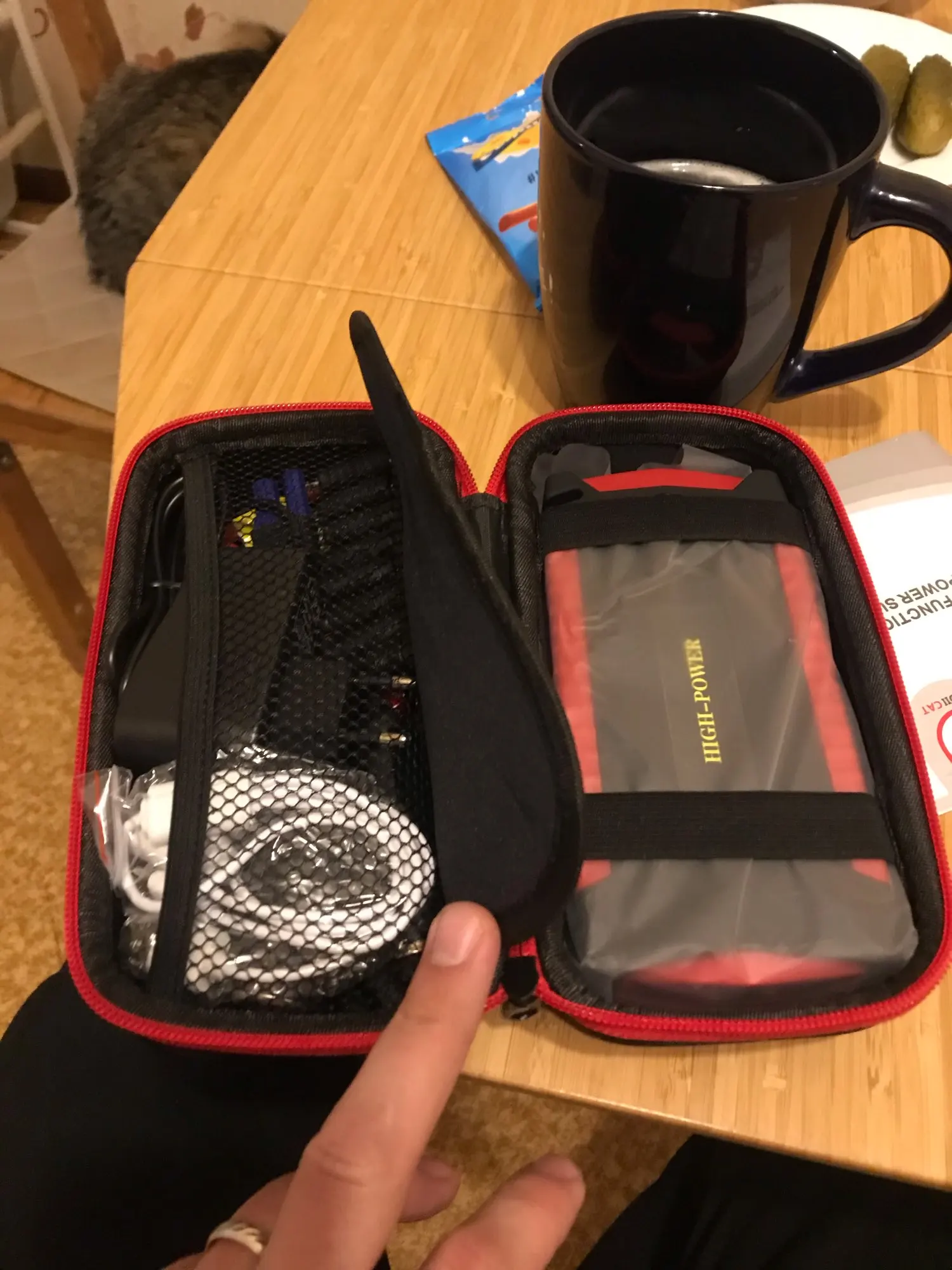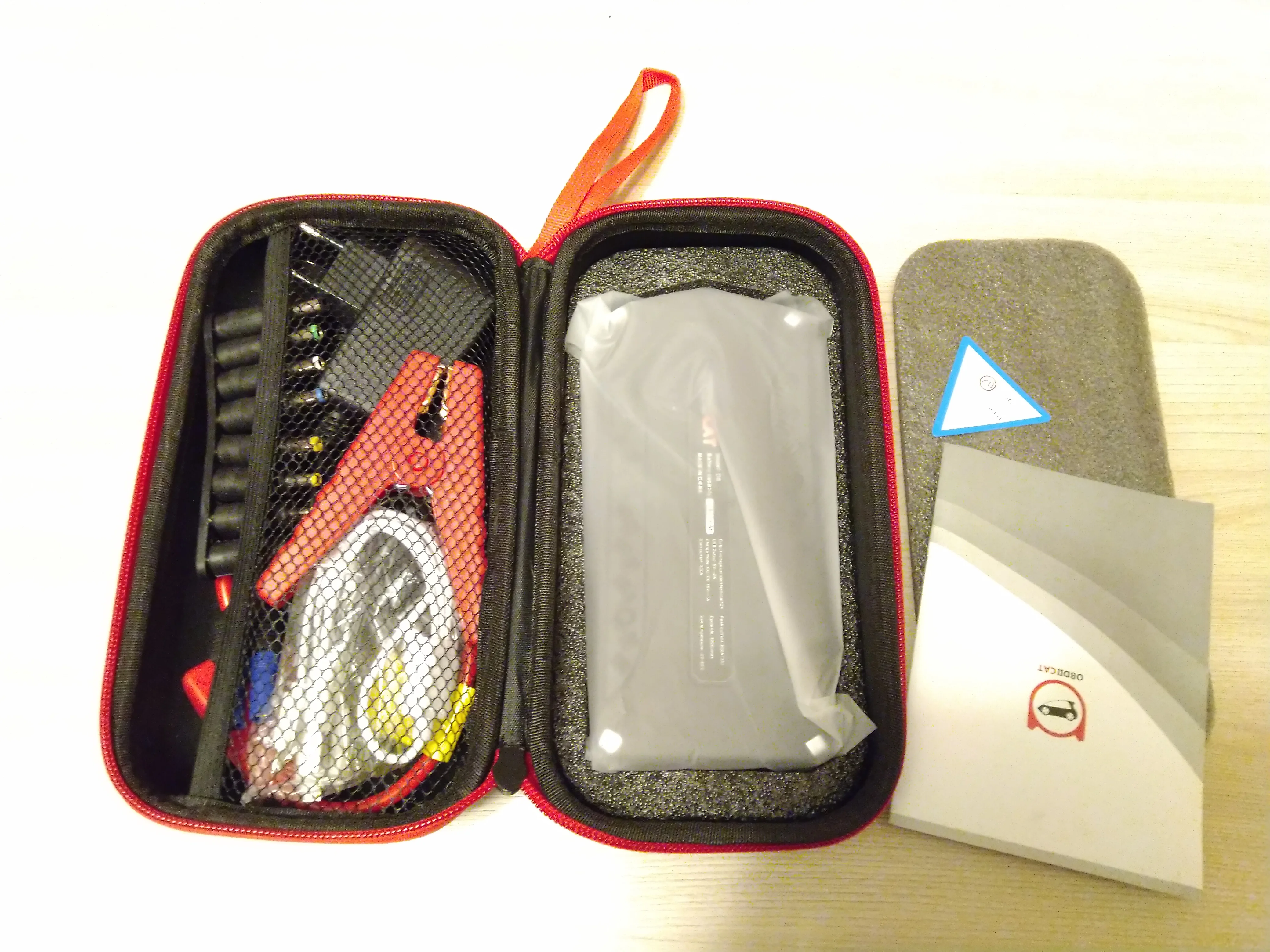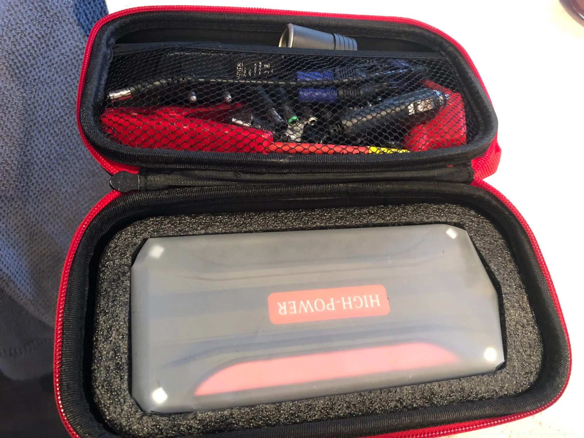 Заказ был отправлен через пару дней, ещё дня три ехал до меня (Мос.область). Был заряжен на 89%. Все функции работают, ноут заряжается, переходник подобрался. В тот же вечер запускал машину: -16 примерно, аккумулятор не крутит, только цикает, двери с кнопки не закрываются. Подключил устройство - двигатель запустился моментально. На запуски у меня тратилось примерно 5-10% от заряда за один пуск. Ёмкость у него конечно гораздо скромнее заявленной, это ощущения от зарядки телефона с аккумулятором 4000mA. Для запуска автомобиля подходит на 100%! Лишь бы прожил подольше) Отдельно хочу отметить чехол: компактный и без всякого кожзама. Правда, всю начинку я бы там не таскал, уж больно тесно)
