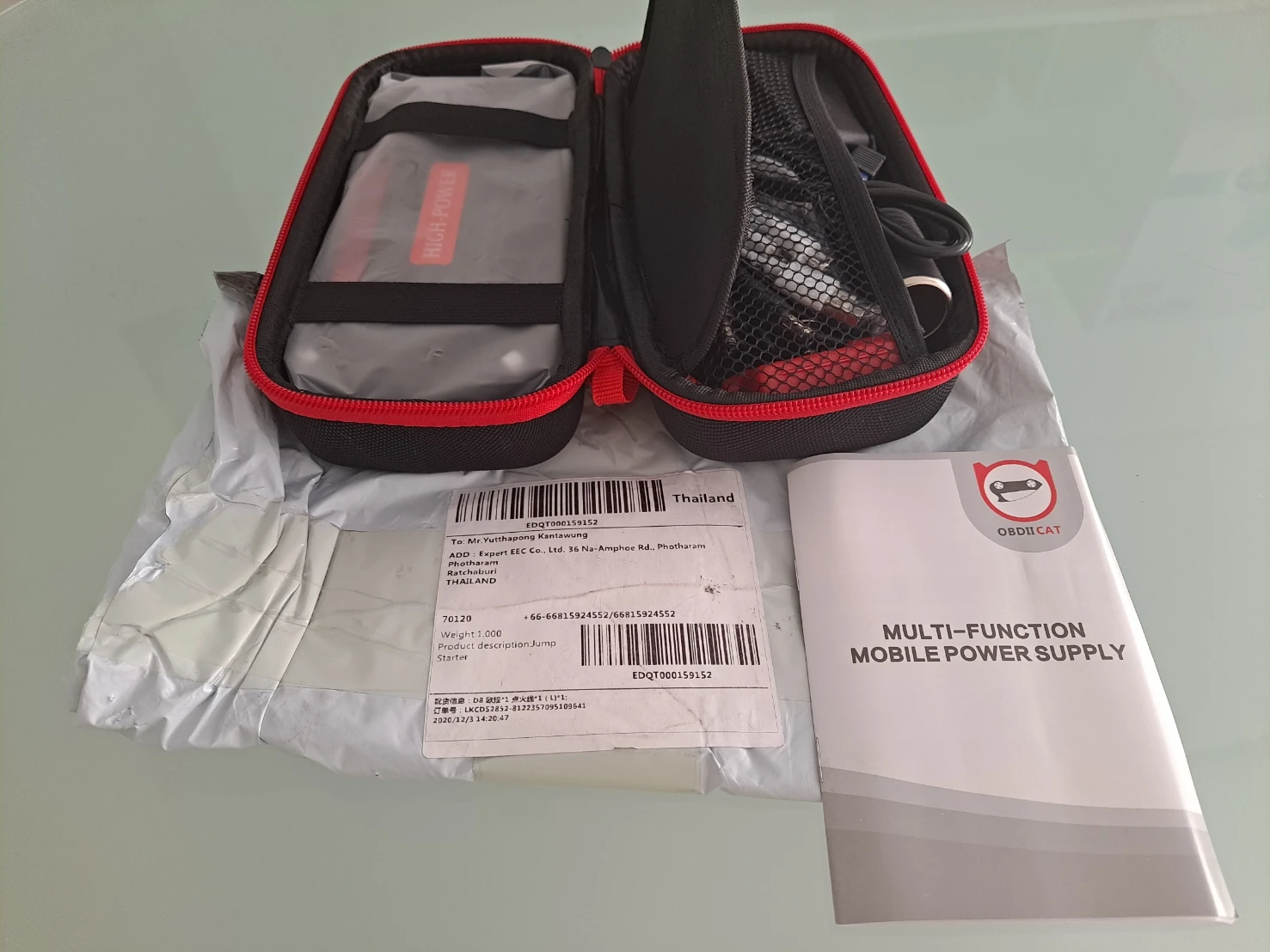 Доставка IML за три дня до Ярославля. Брал модель D9. Был заряжен на 90%. Всё работает, но машину заводить не пробовал, т.к. купил в подарок. Прибор и шнуры уложены в жёсткий кейс на молнии.