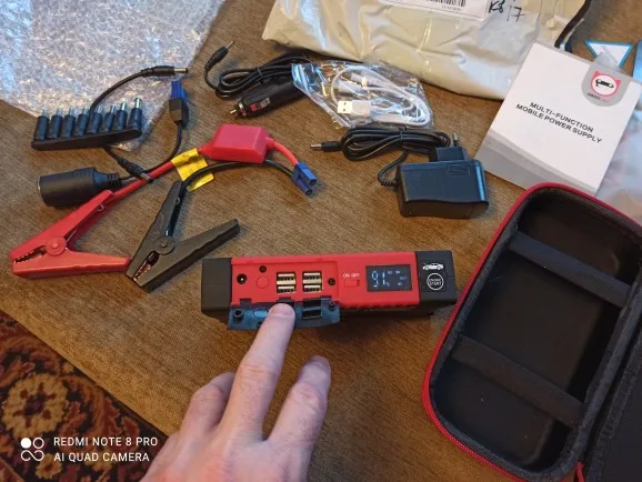 отримав даний прилад швидко як заявлено. опробування пройшло на відмінно. запустив машину (2.4 - об'єм двигуна) з першого разу на тому заряді що прийшов від виробника. в комлекті дуже багато різних перехідників ( ноутбуки, телефони, прикурювач ) . РЕКОМЕНДУЮ ДАНИЙ ВИРІБ І ВИРОБНИКА.