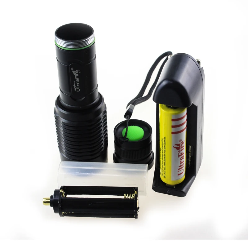 1 фонарик + зарядное устройство + 1 аккумулятор 18650.
