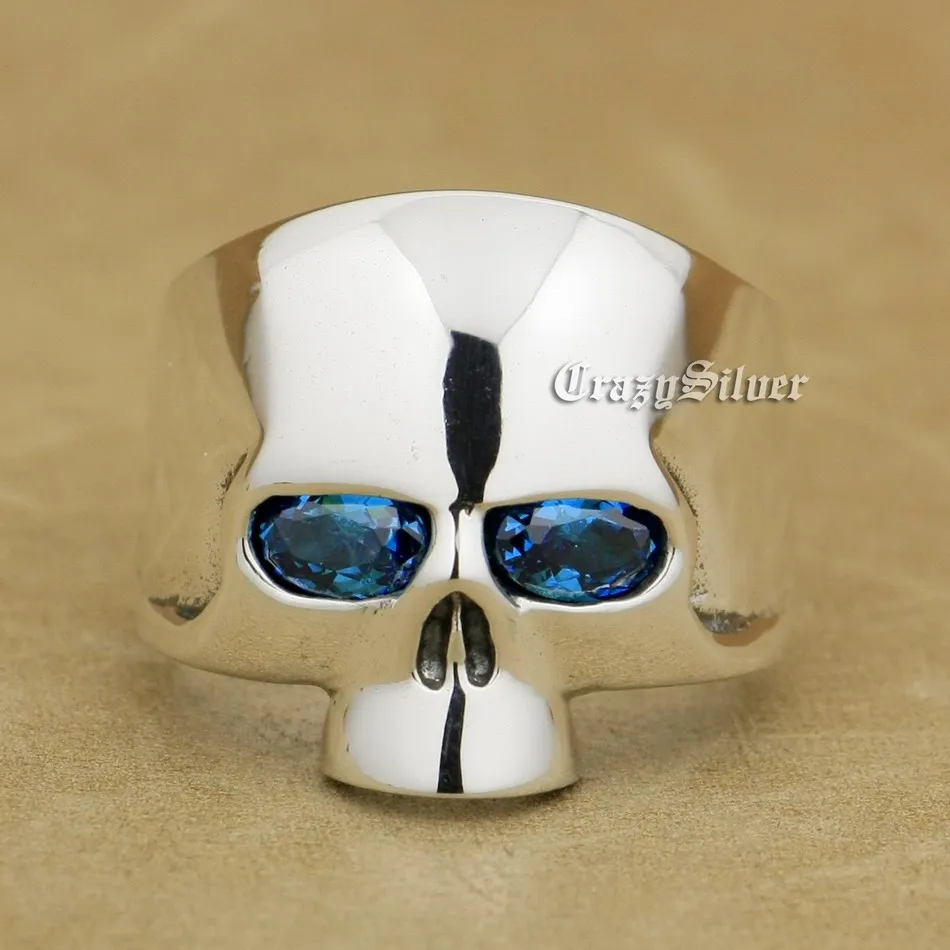 CZ Eyes 925 пробы Серебряное кольцо с черепом мужское байкерское кольцо в стиле рок панк 9GX03 американский размер 7 15