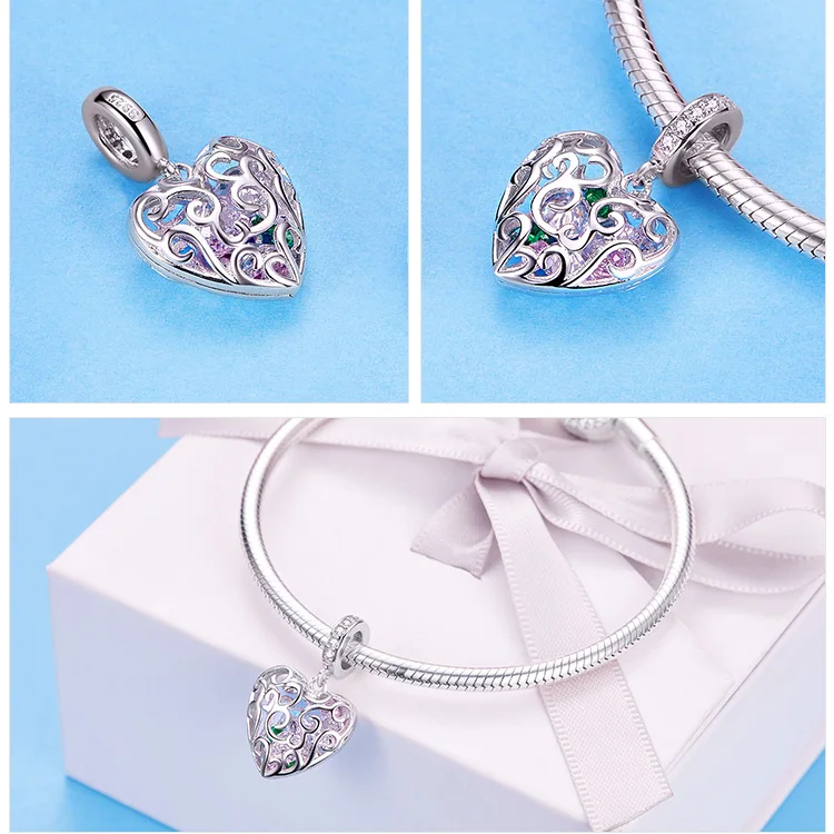 WOSTU полная любовь сердце бусы Настоящее серебро 925 пробы Шарм Подходит оригинальный браслет Подвеска для женщин самодельные Украшения, Аксессуары
