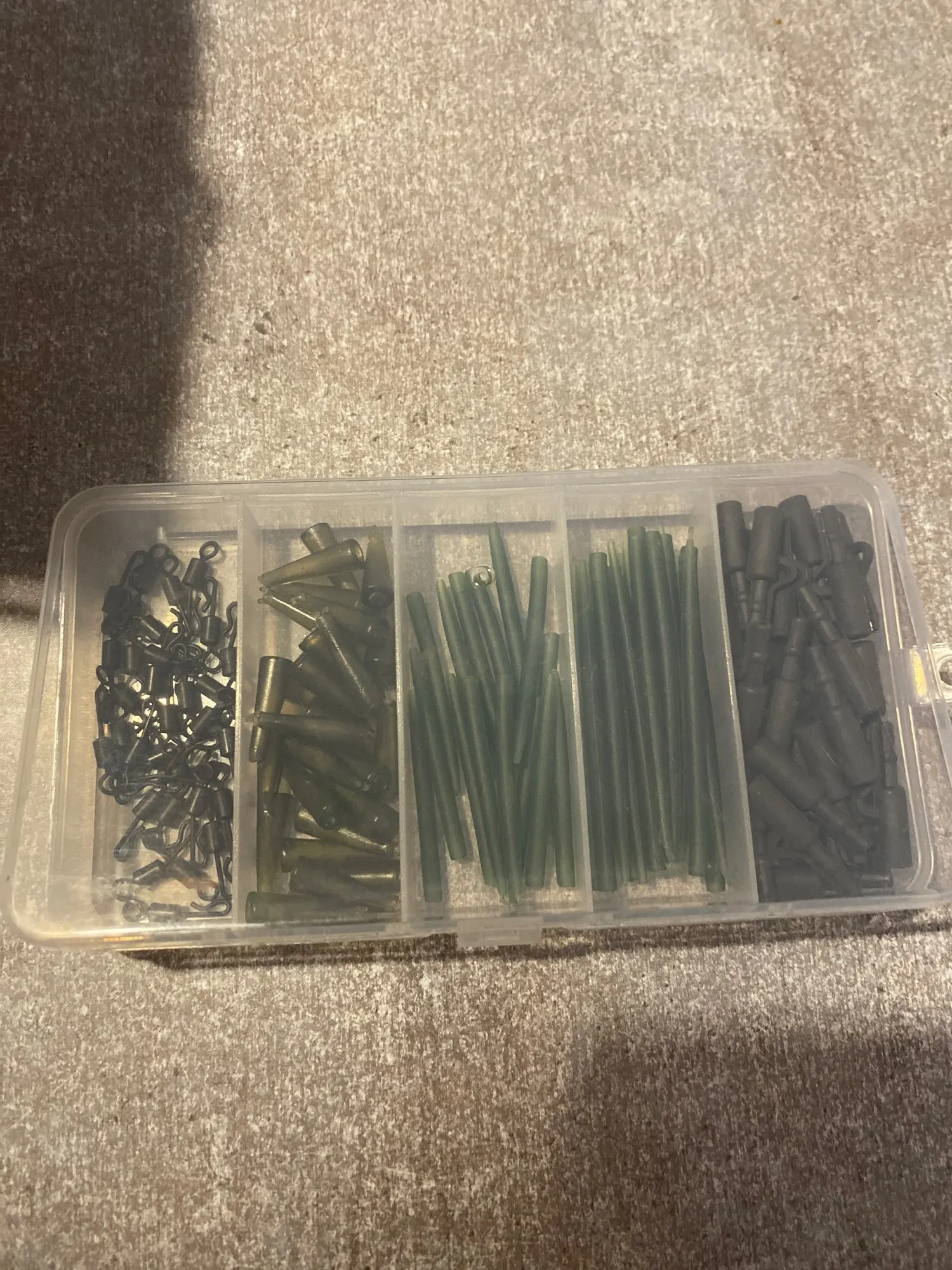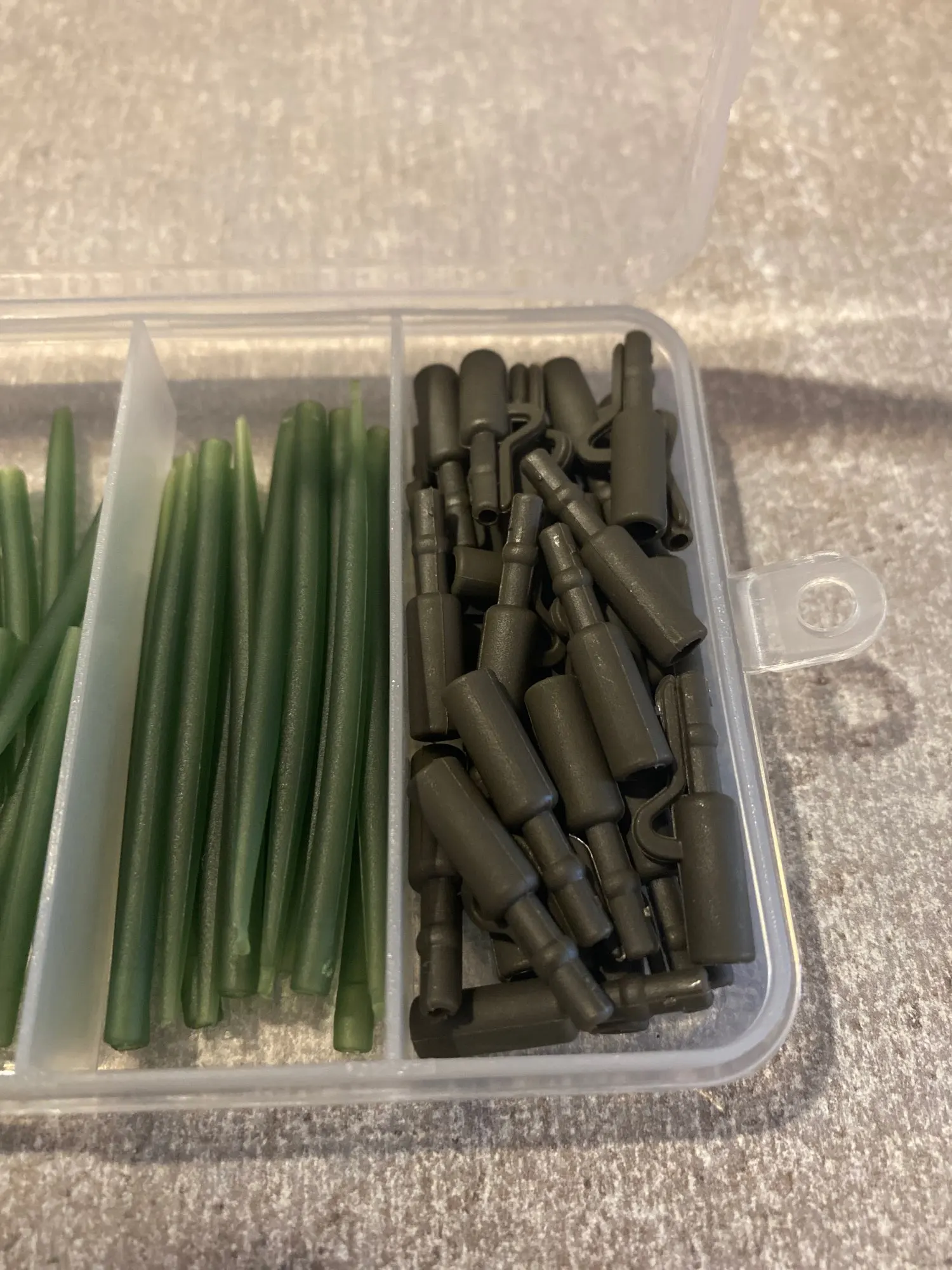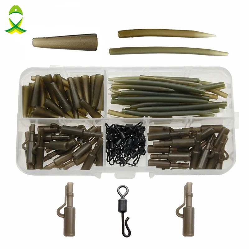 JSM 120 шт. аксессуары для ловли карпа, снасти, анти-спутывающиеся рукава, хвост, резина, безопасные поводковые зажимы, быстрая замена, набор вертлюгов с коробкой