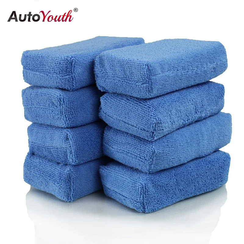 Аппликаторы AUTOYOUTH из микрофибры премиум-класса, губки, тряпки, синие (8 шт. в упаковке), 12 х8 х4 см, для ухода за автомобилем, полировка воском из микрофибры