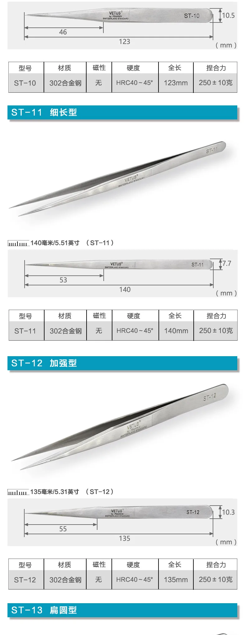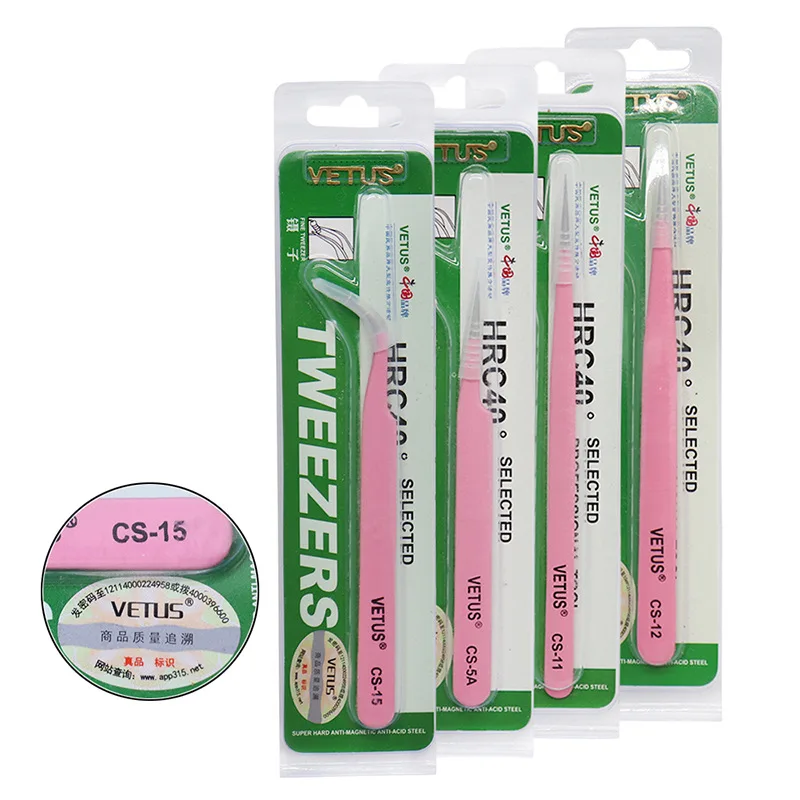 100% Оригинальный Пинцет Vetus, пинцет для накладных ресниц из нержавеющей стали, гиперфин, высокая точность, с защитой от кислоты пинцеты антистатические