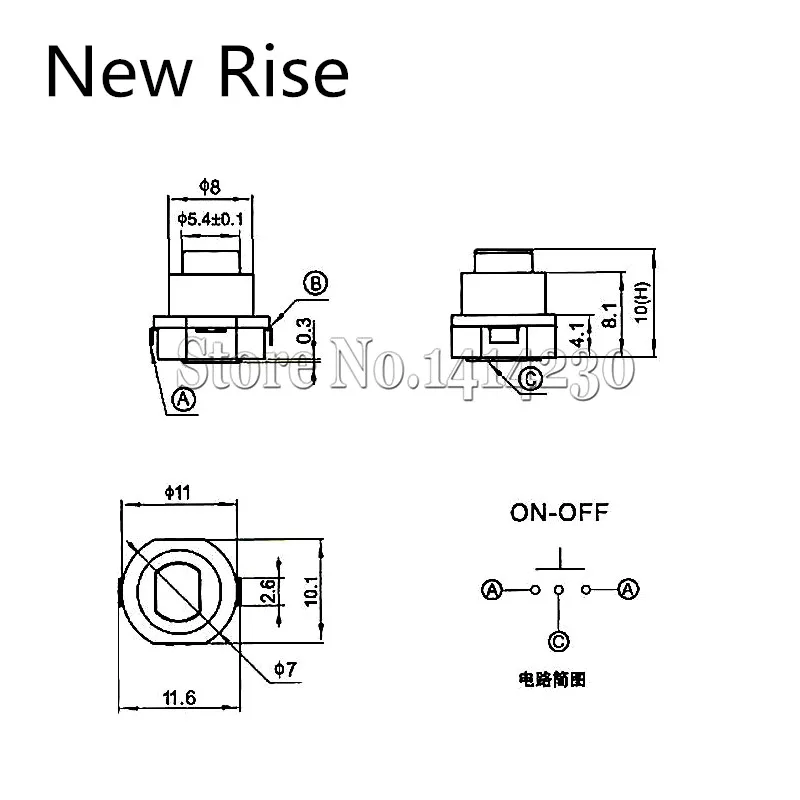 10 шт., круглая кнопка для фонарика, постоянный ток 30 В, 1 А, 10 мм x 10 мм