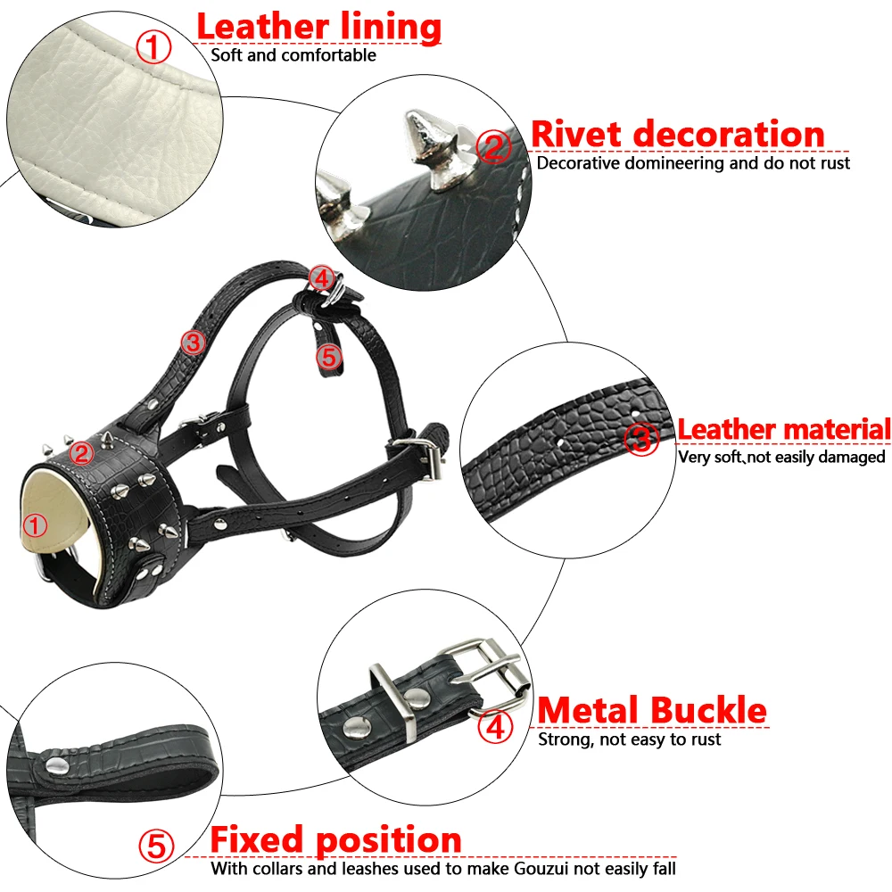 Намордник для дрессировки собак, регулируемый, с шипами, из искусственной кожи, мягкая, удобная, предотвращающая укус, маска для питбултерьера, хаски icon star icon star icon star icon star icon star
